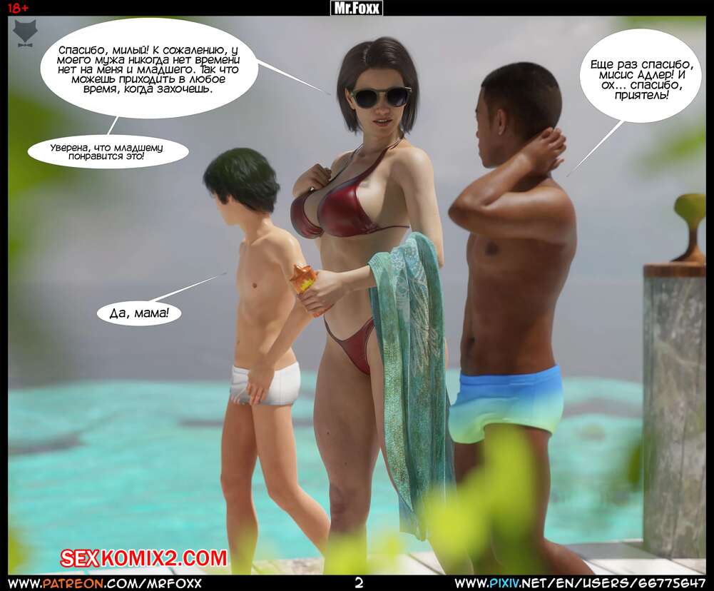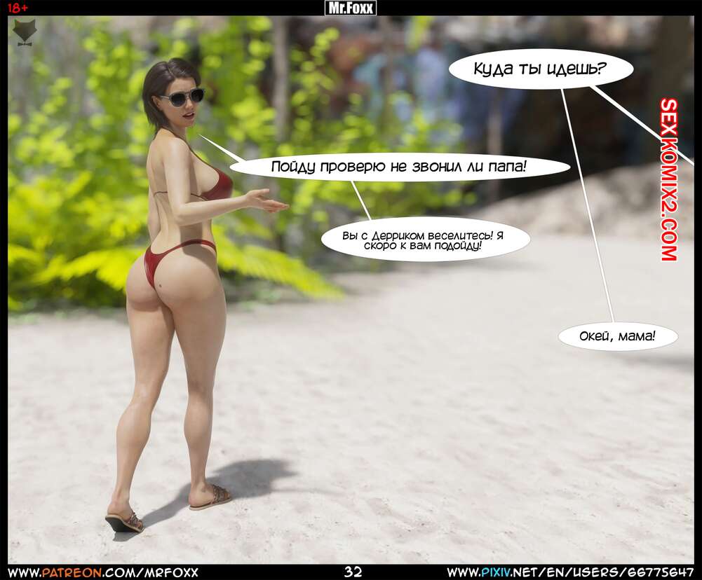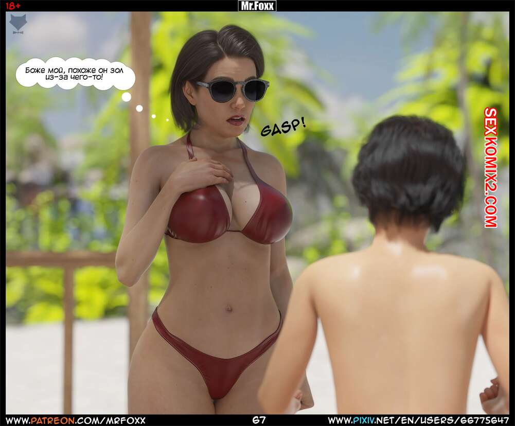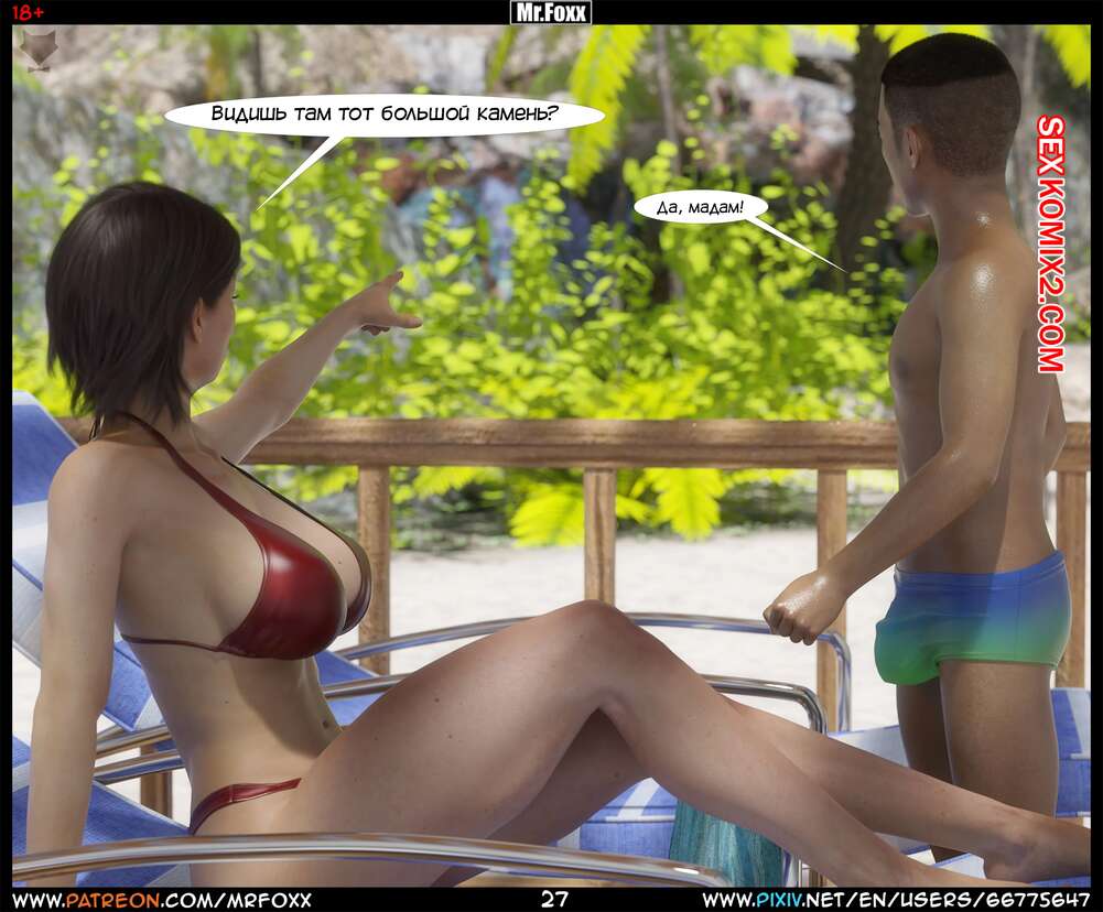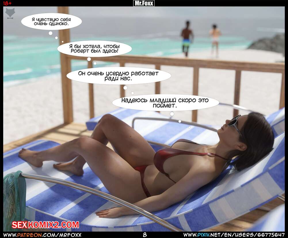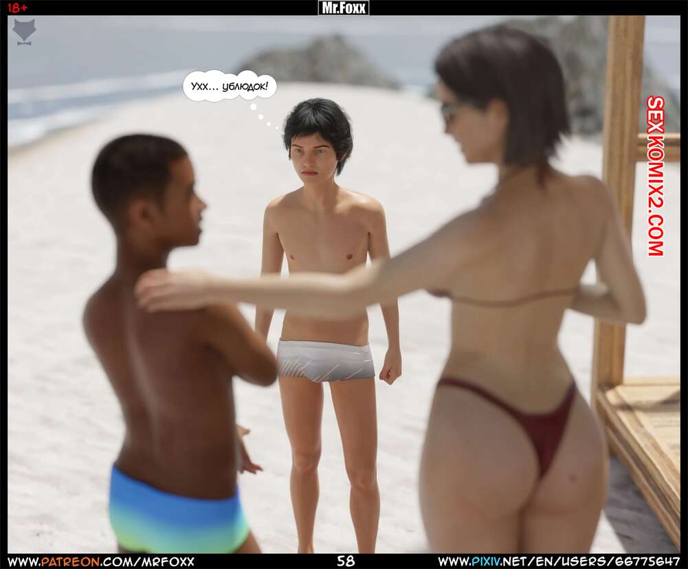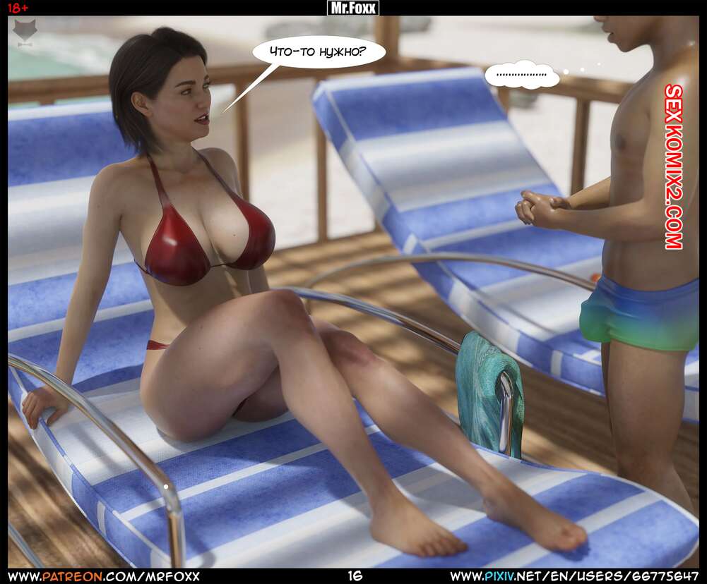 Порно комикс Дело мамы. Часть 1. Moms Affair. Mr.FOXX Сисястая брюнетка милфа отправилась на пляж со своим сыном и его лучшим другом. Темнокожий парень был просто без ума от шикарного тела милфы и предложил ей поебаться с ним.