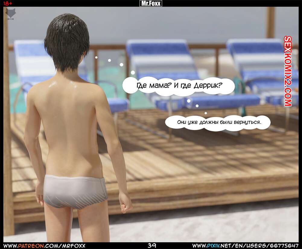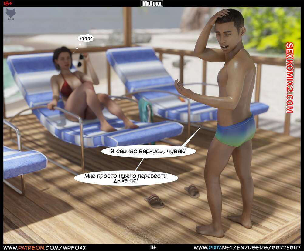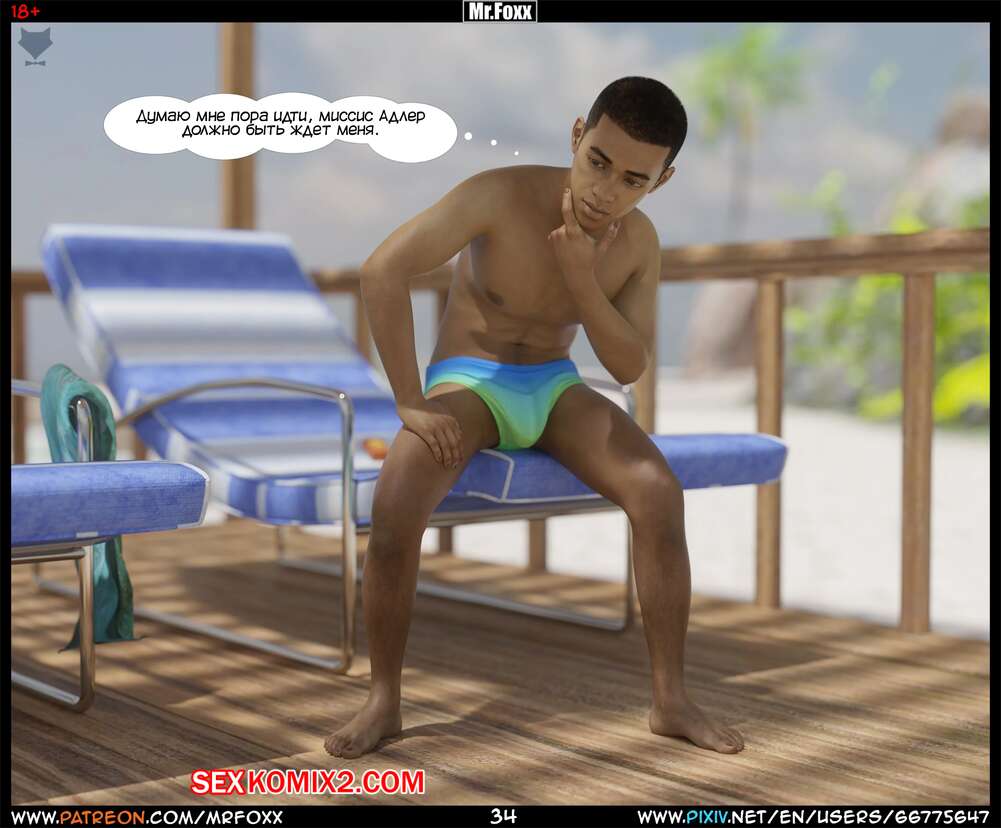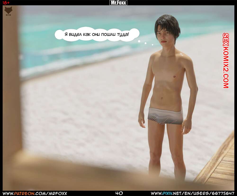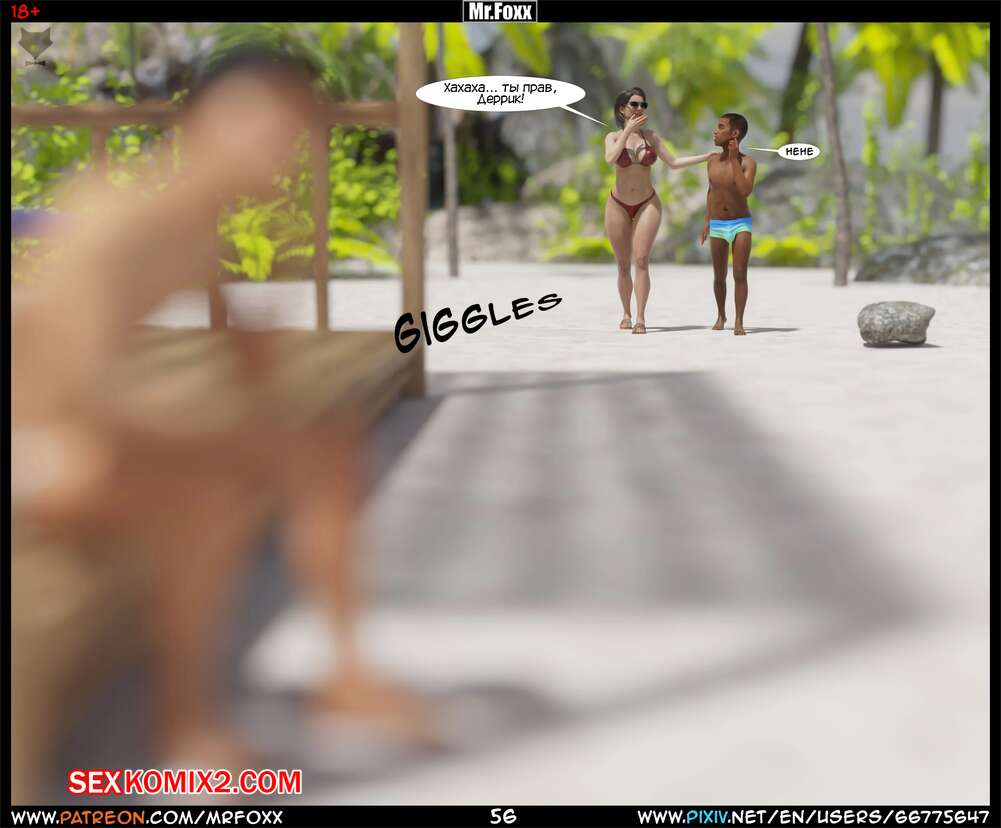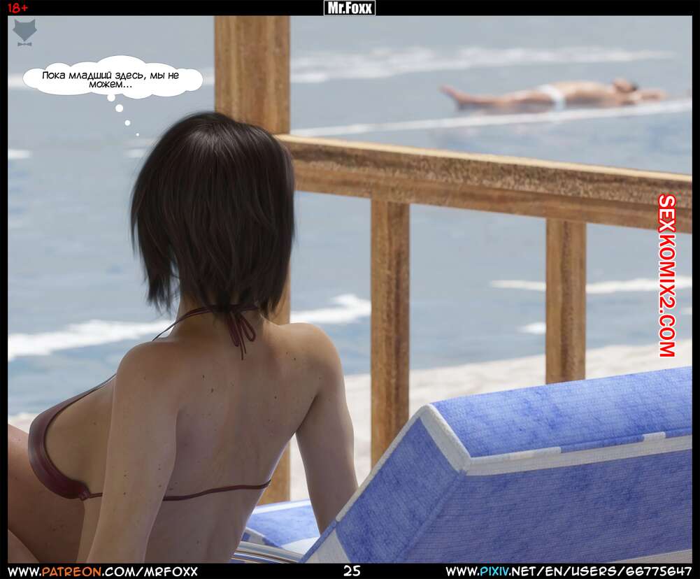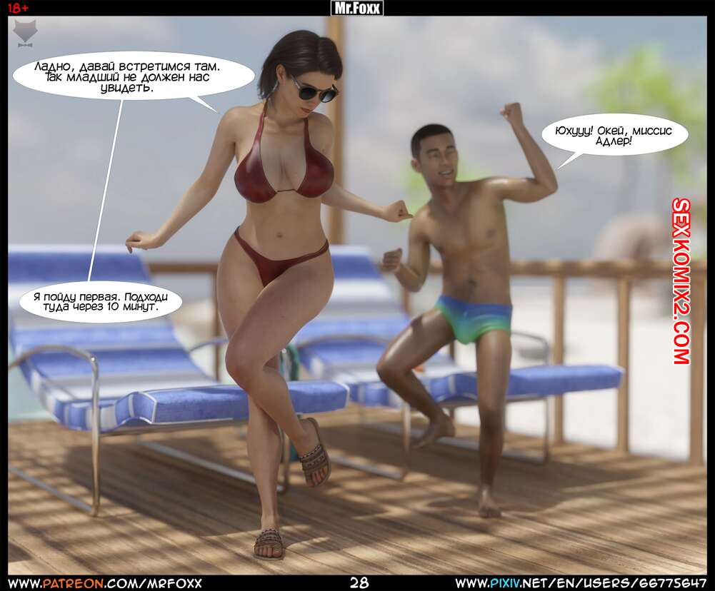 Порно комикс Дело мамы. Часть 1. Moms Affair. Mr.FOXX Сисястая брюнетка милфа отправилась на пляж со своим сыном и его лучшим другом. Темнокожий парень был просто без ума от шикарного тела милфы и предложил ей поебаться с ним.