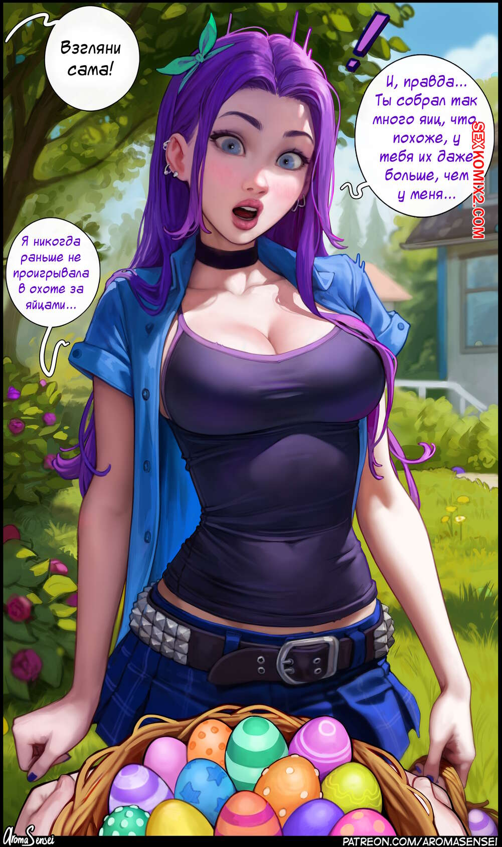 Порно комикс Stardew Valley. Aroma Sensei Горячие сексуальные красотки возбуждаются во время прогулки в парке. Они раздеваются перед парнем и сосут его большой хуй, после чего дают ему себя выебать во все дырочки.