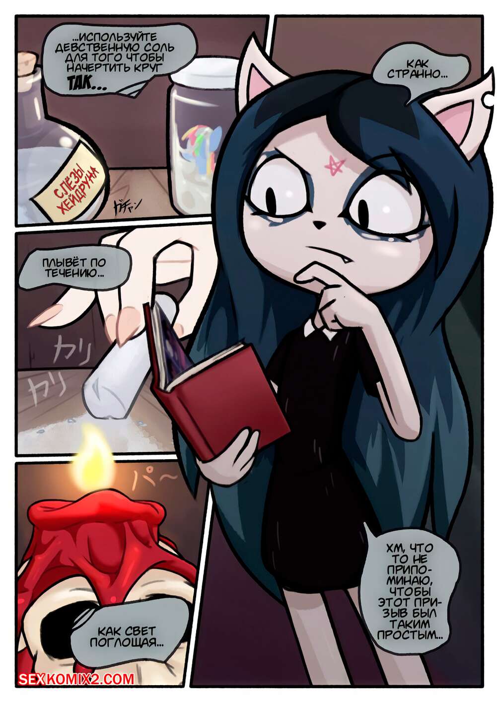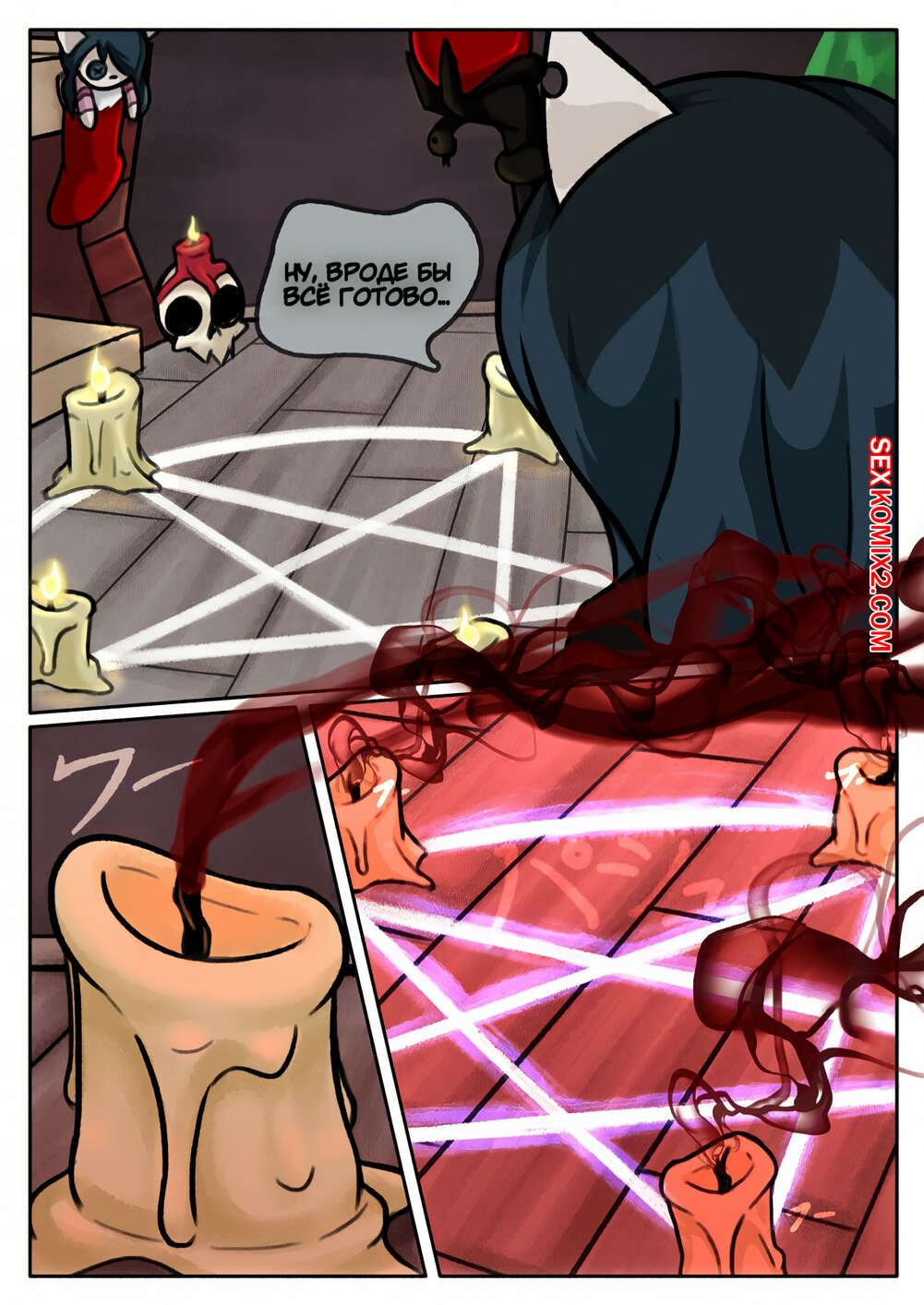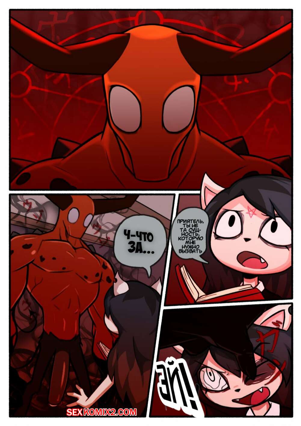 Порно комикс The Summoning. Дьявольское спаривание. N3F Горячая сексуальная брюнетка встретилась с демоном с огромным хуем и решила с ним повеселиться. Красотка разделась и стала сосать его большой хуй, после чего дала ему себя выебать.
