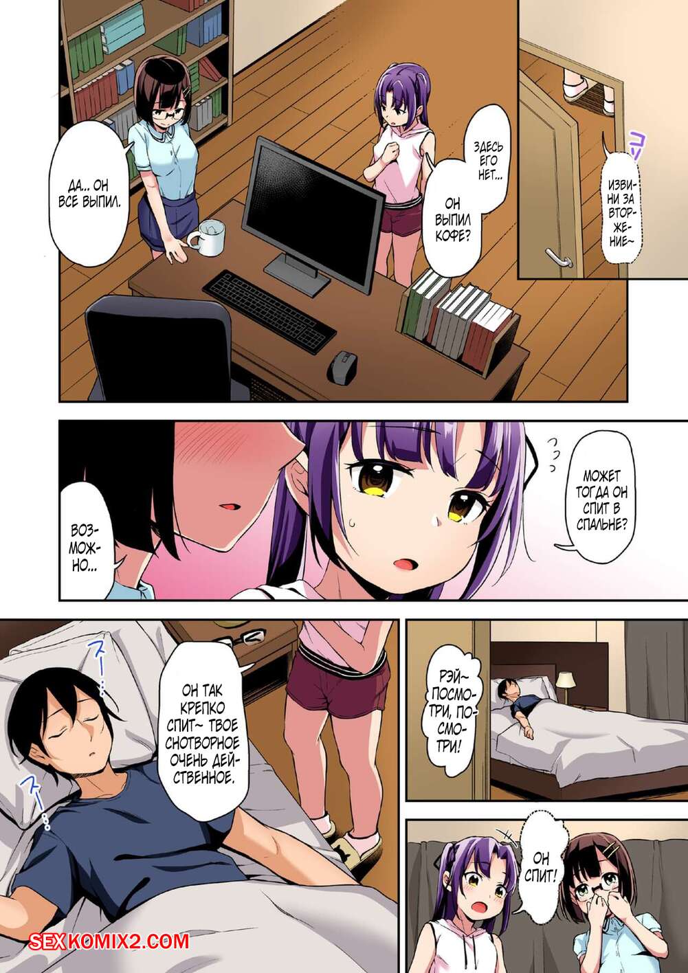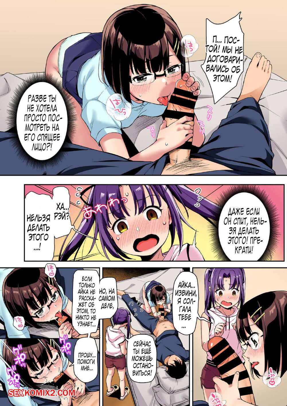 Порно комикс Тренировка невесты изнасилованием во сне. Часть 4. Hashibiro Kou Пока мужик спал, две горячие сексуальные брюнетки решили с ним повеселиться. Они разделись и стали сосать его большой хуй, после чего он проснулся и хорошенько выебал красоток.