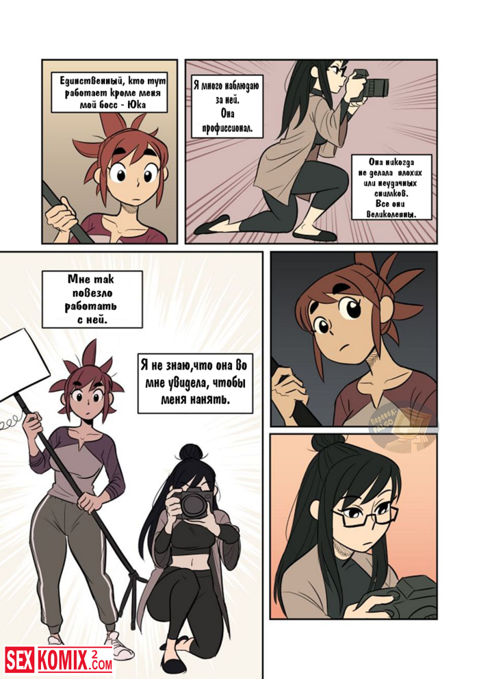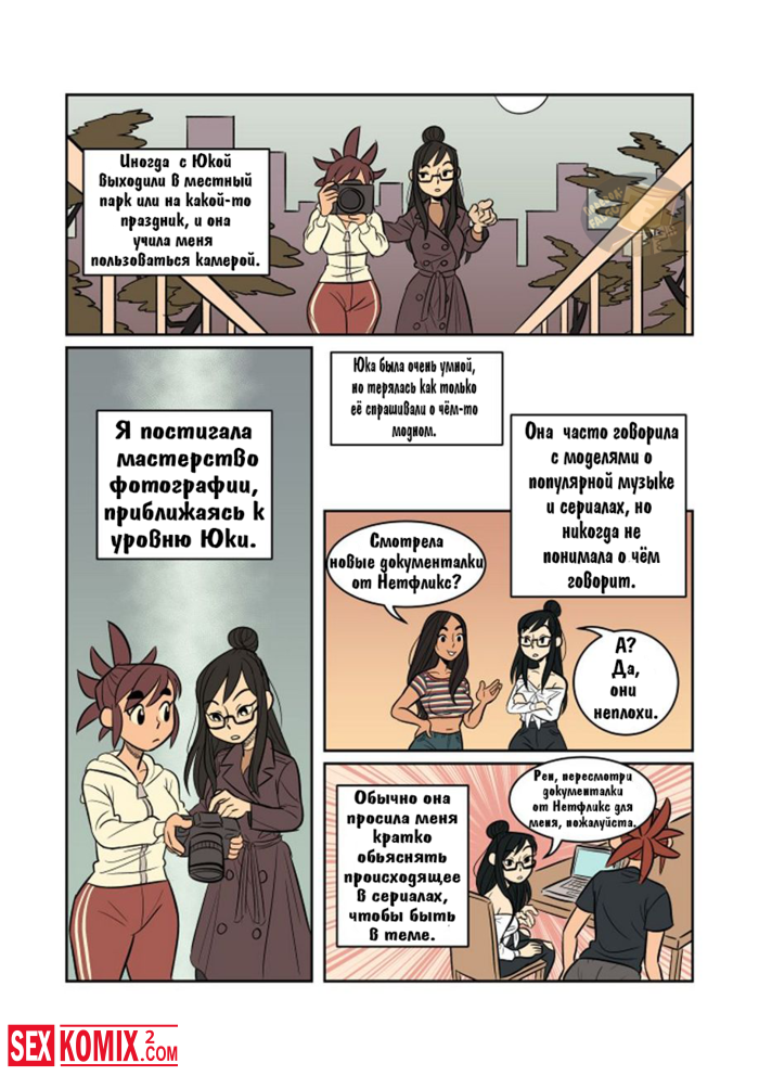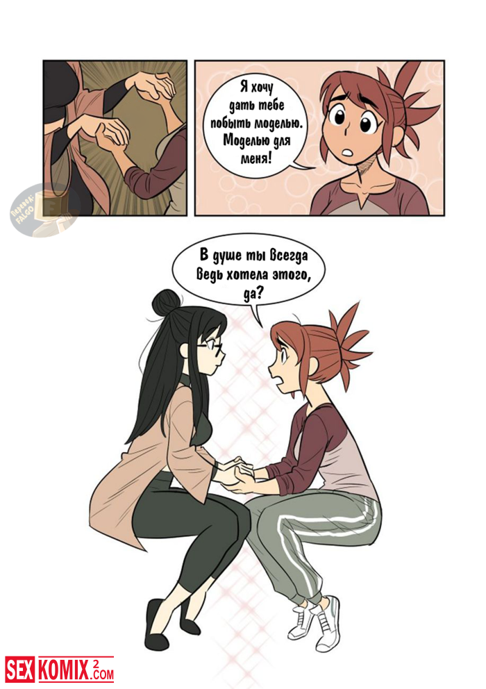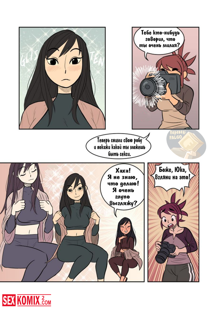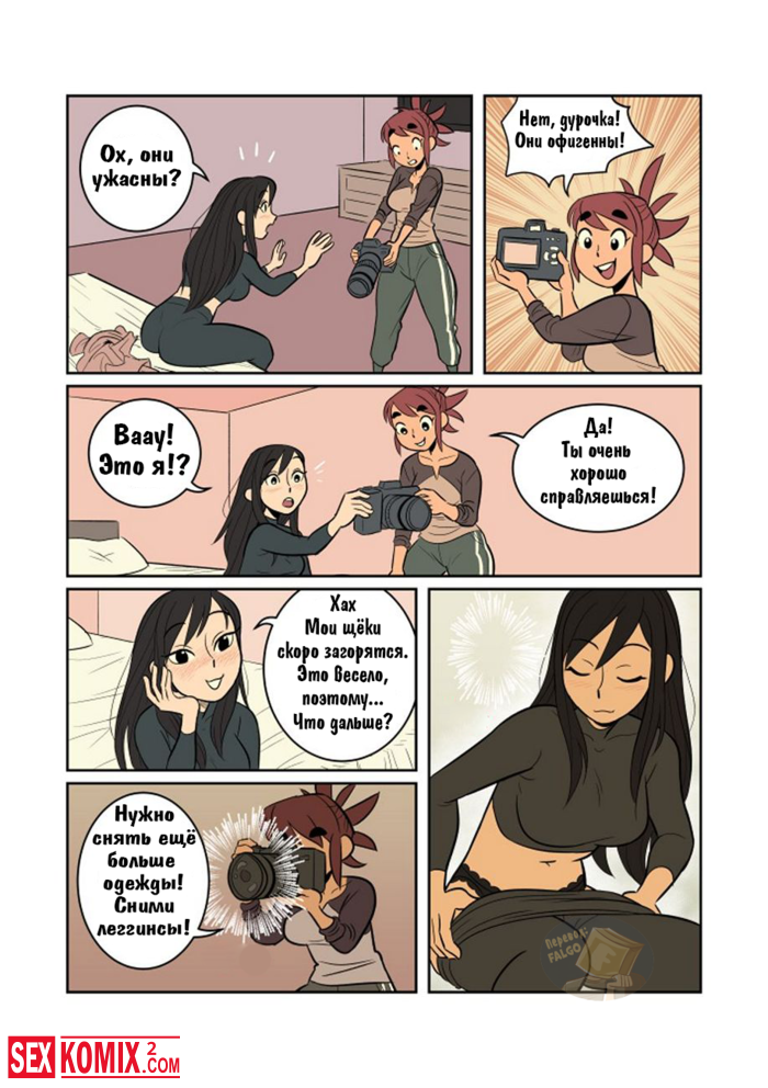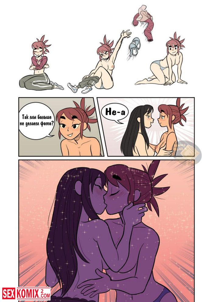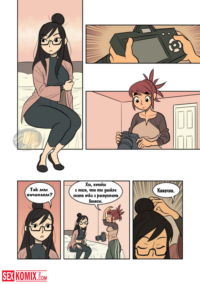 Порно комикс Экспозиция. Девушка позвала свою подруга, что она её пофотографировала. Во время этой фотосессии девушки начали целоваться и занялись лесбийским сексом.