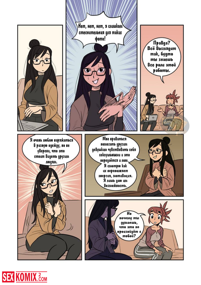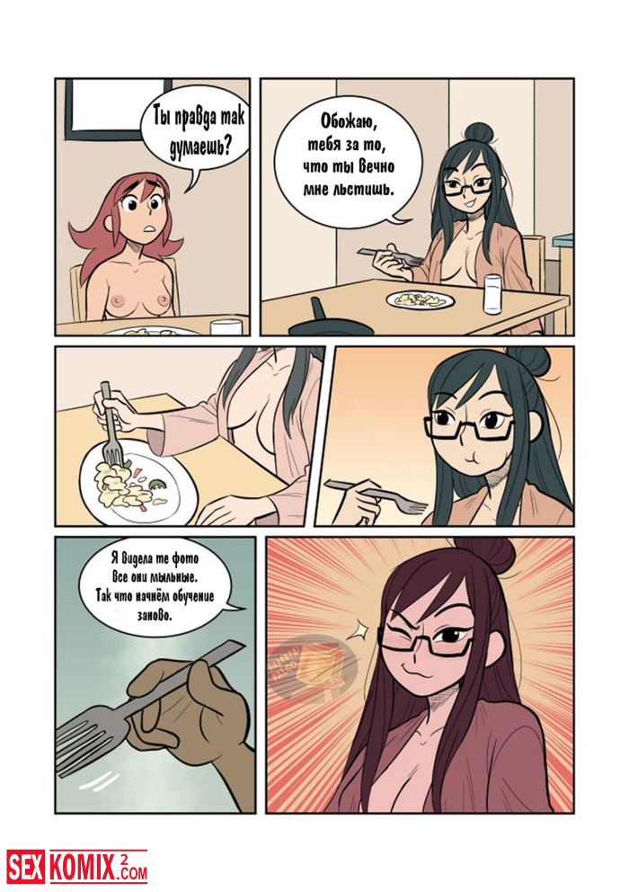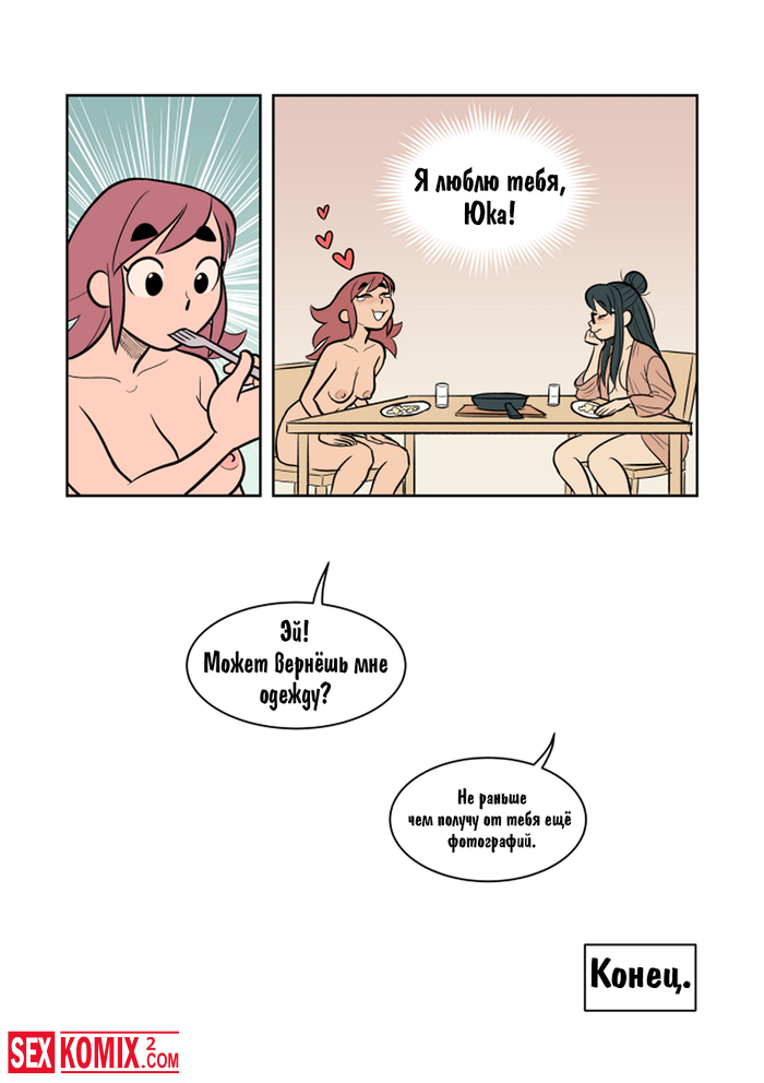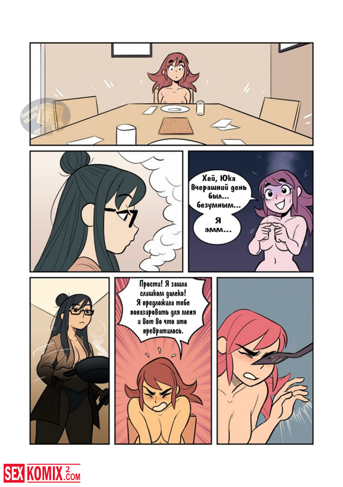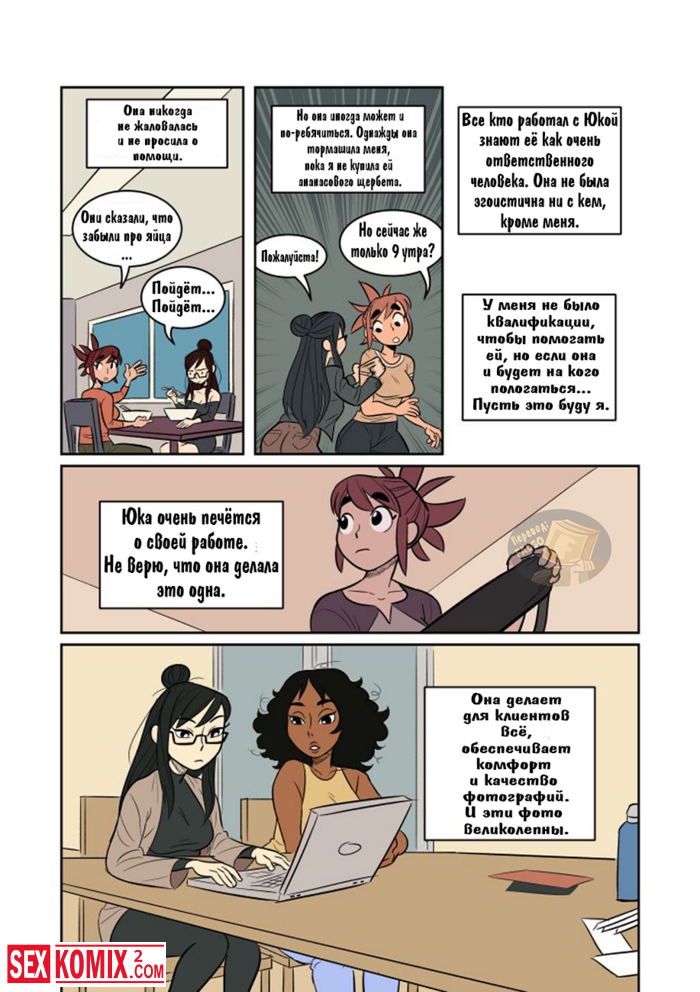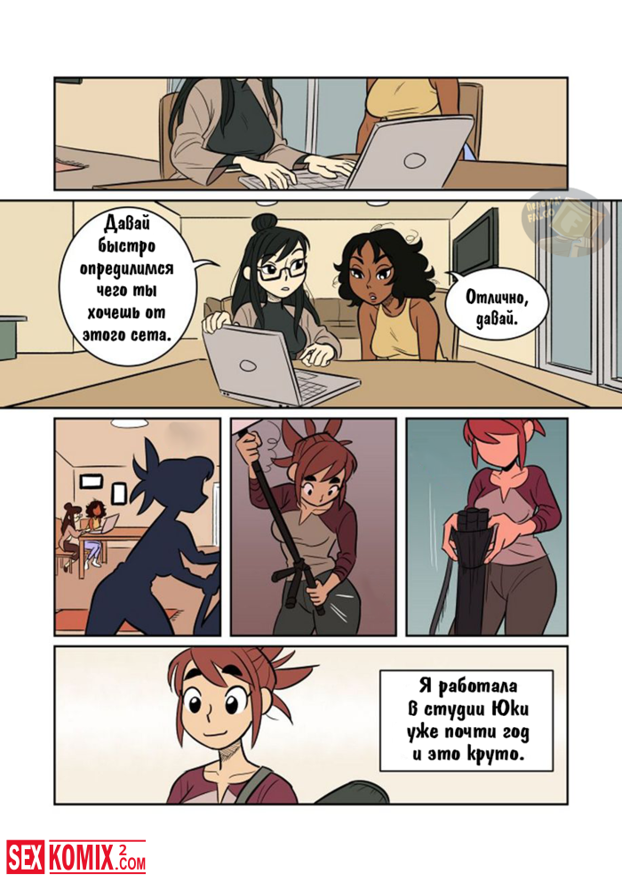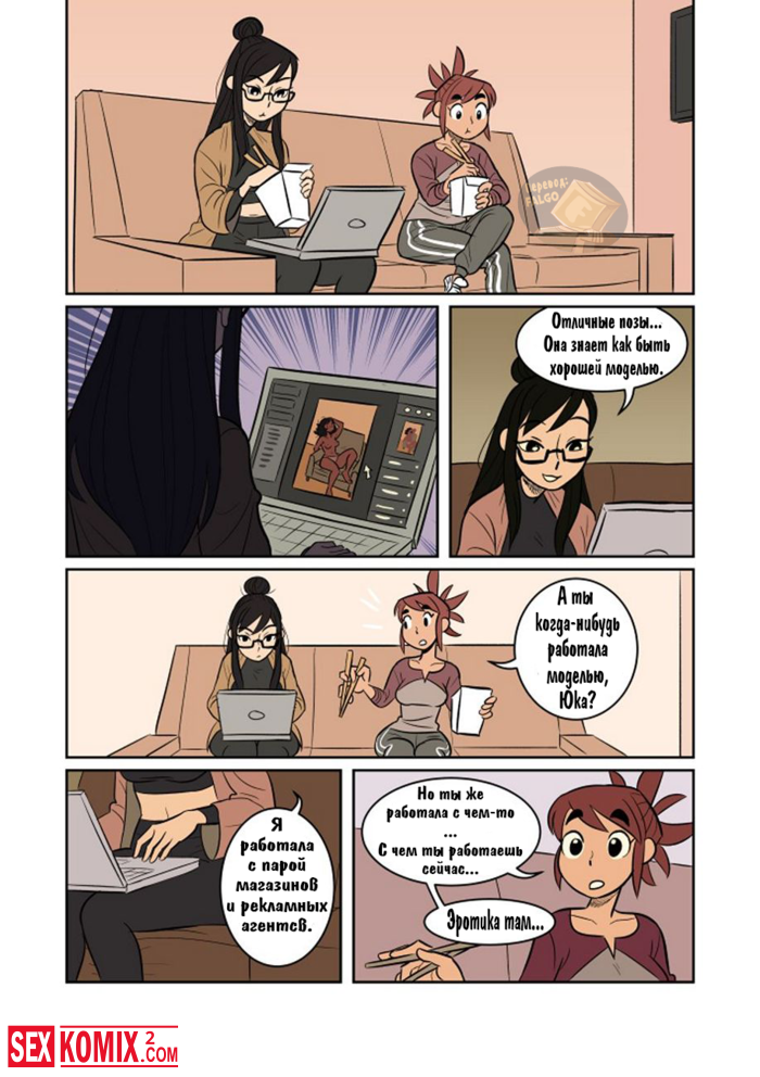 Порно комикс Экспозиция. Девушка позвала свою подруга, что она её пофотографировала. Во время этой фотосессии девушки начали целоваться и занялись лесбийским сексом.