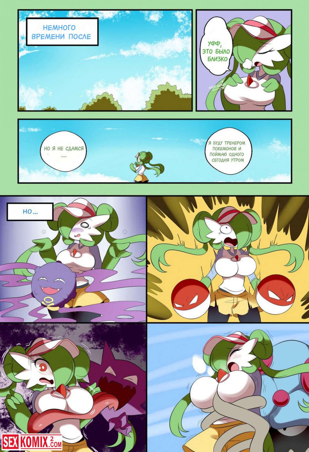 Порно комикс Как Гардевуар первого покемона получала. Девушка тренер покемонов, пошла н поиски нового питомца попала в сложную ситуацию. Она казалась без одежды и покемона.