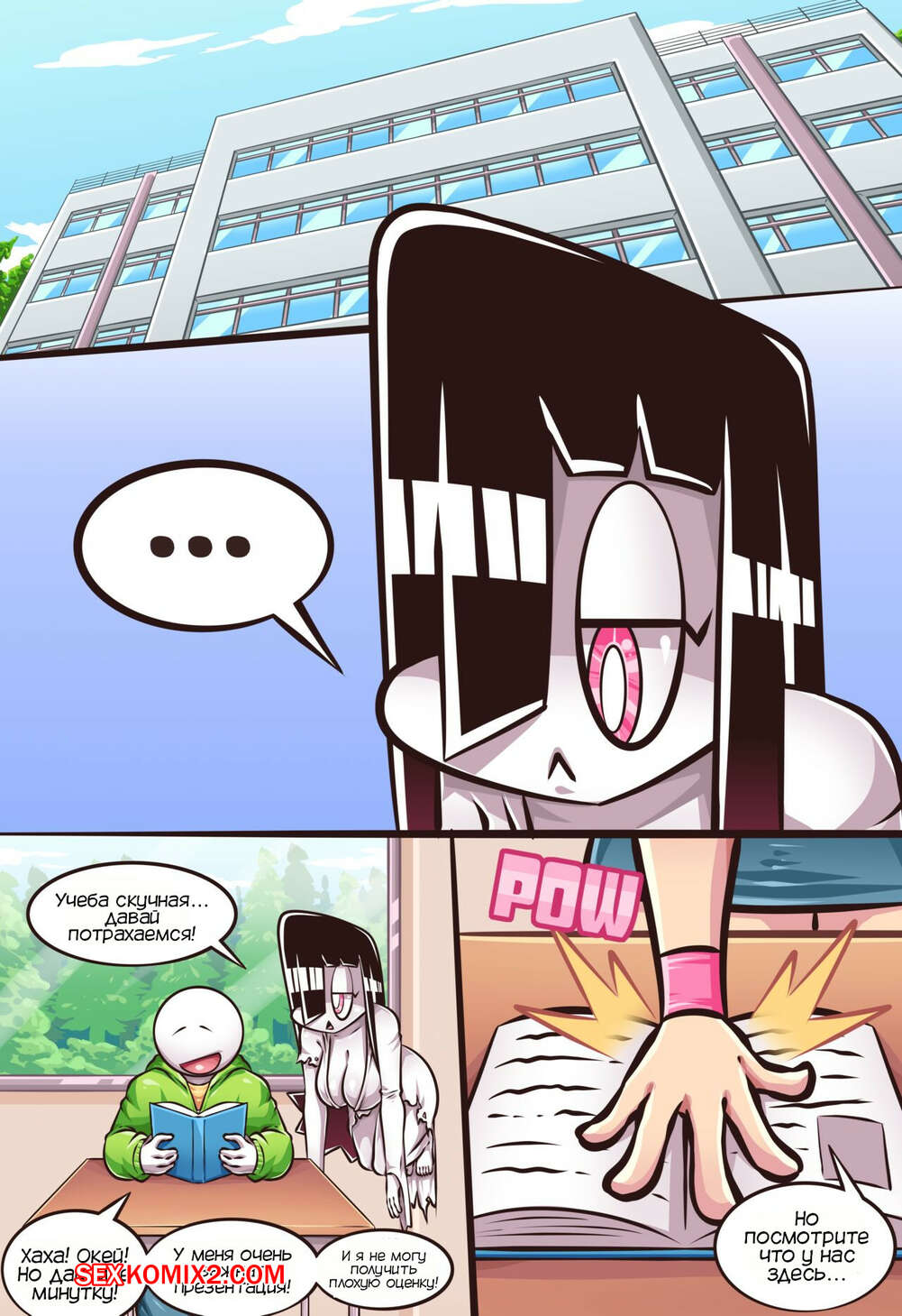 Порно комикс Паранормальное удовольствие. Часть 2. Paranormal Pleasure. RiukyKappa Парень готовился к презентации по учебе, но ему помешала его одноклассница сучка, которой он был вынужден отдать свое эссе. Новая подруга парня решила помочь ему и разобраться с задиристой сучкой.