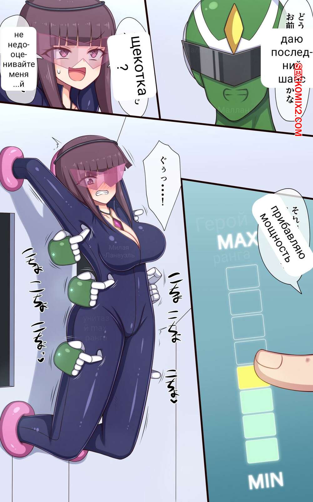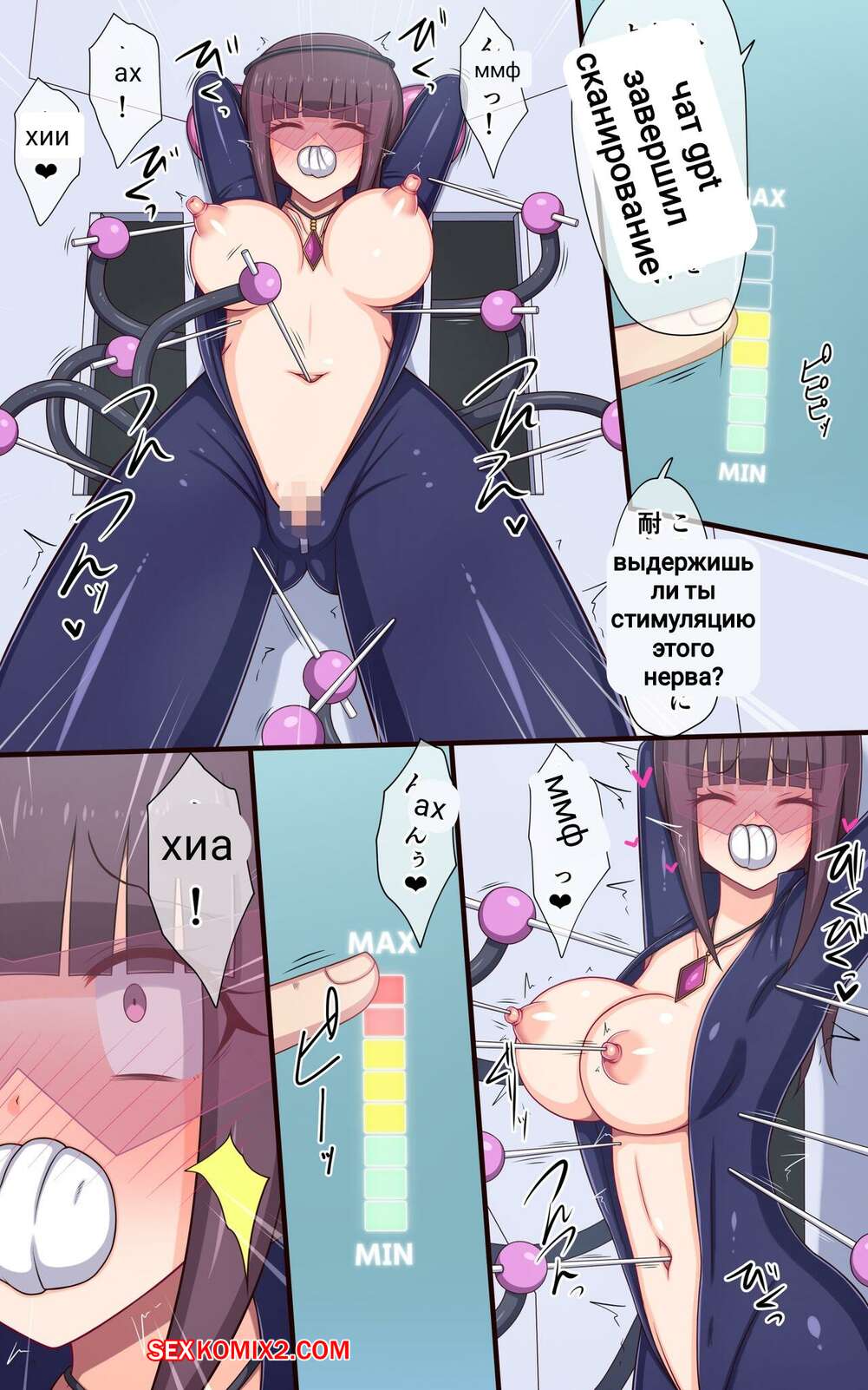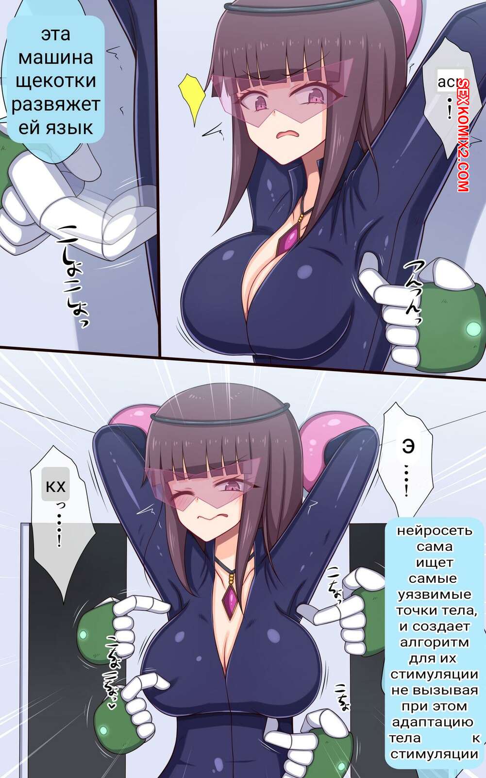 Порно комикс Машина обученная искусственным интеллектом щекочет шпионку. Сексуальная брюнетка шпионка была поймана и теперь ее решили наказать. Красотку связали и раздели, после чего стали щекотать ее шикарное тело, доставляя девушке невероятные ощущения.