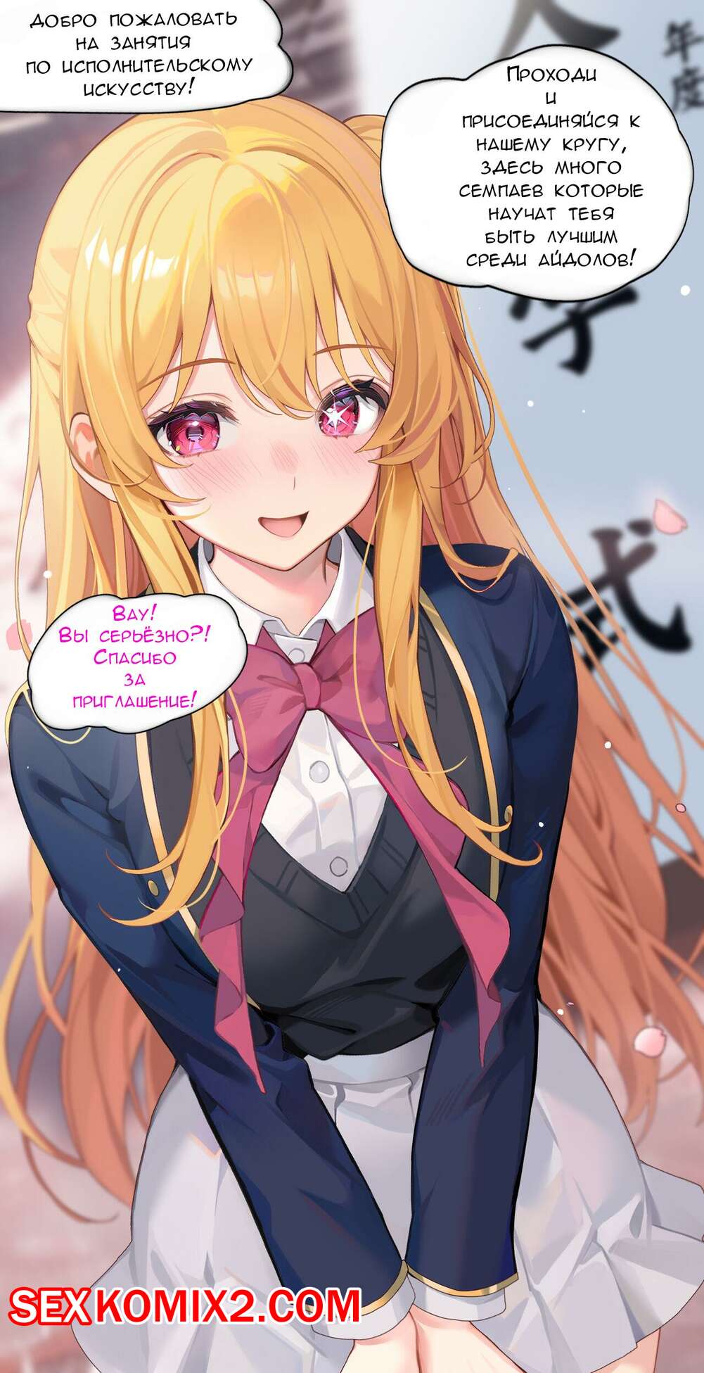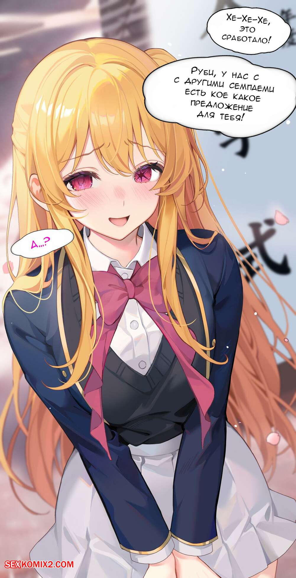 Порно комикс Необычная церемония вступления для Хошино Руби. machi Парни пригласили сексуальную блондинку, чтобы она прошла церемонию вступления. Красотка разделась и стала сосать большие хуи парней, после чего дала им себя выебать.