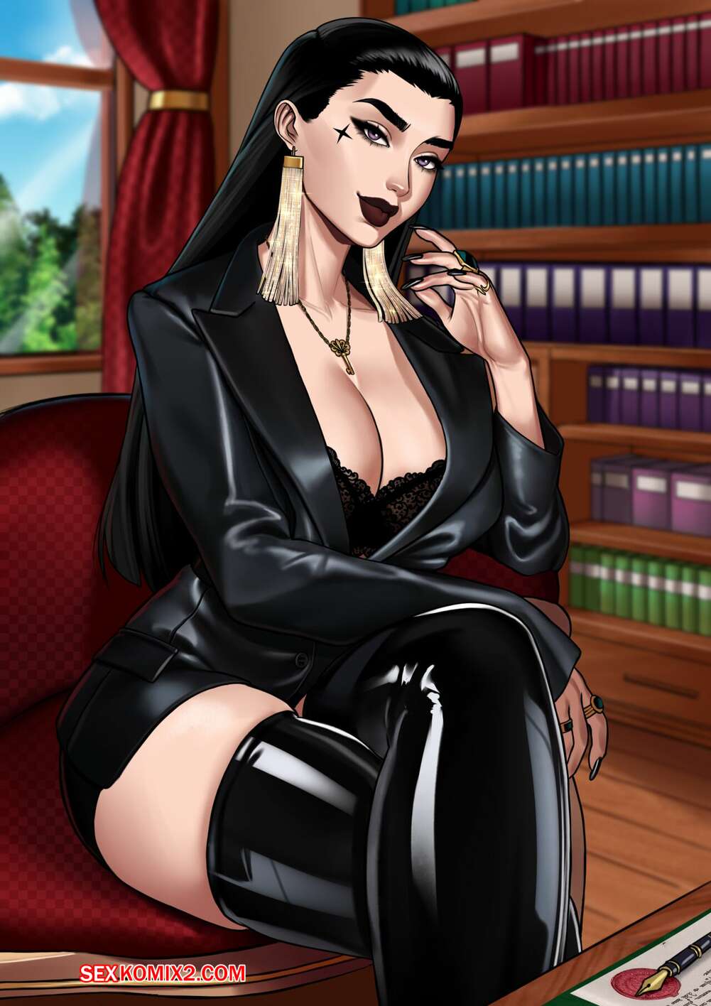 Порно комикс Темный контракт. Black Contract. OCubze Парень прибыл в дом к сексуальной милфе брюнетке и она предложила ему подписать темный контракт. Красотка раздела парня и связала, после чего стала ласкать ее большой хуй, помогая ему кончить.