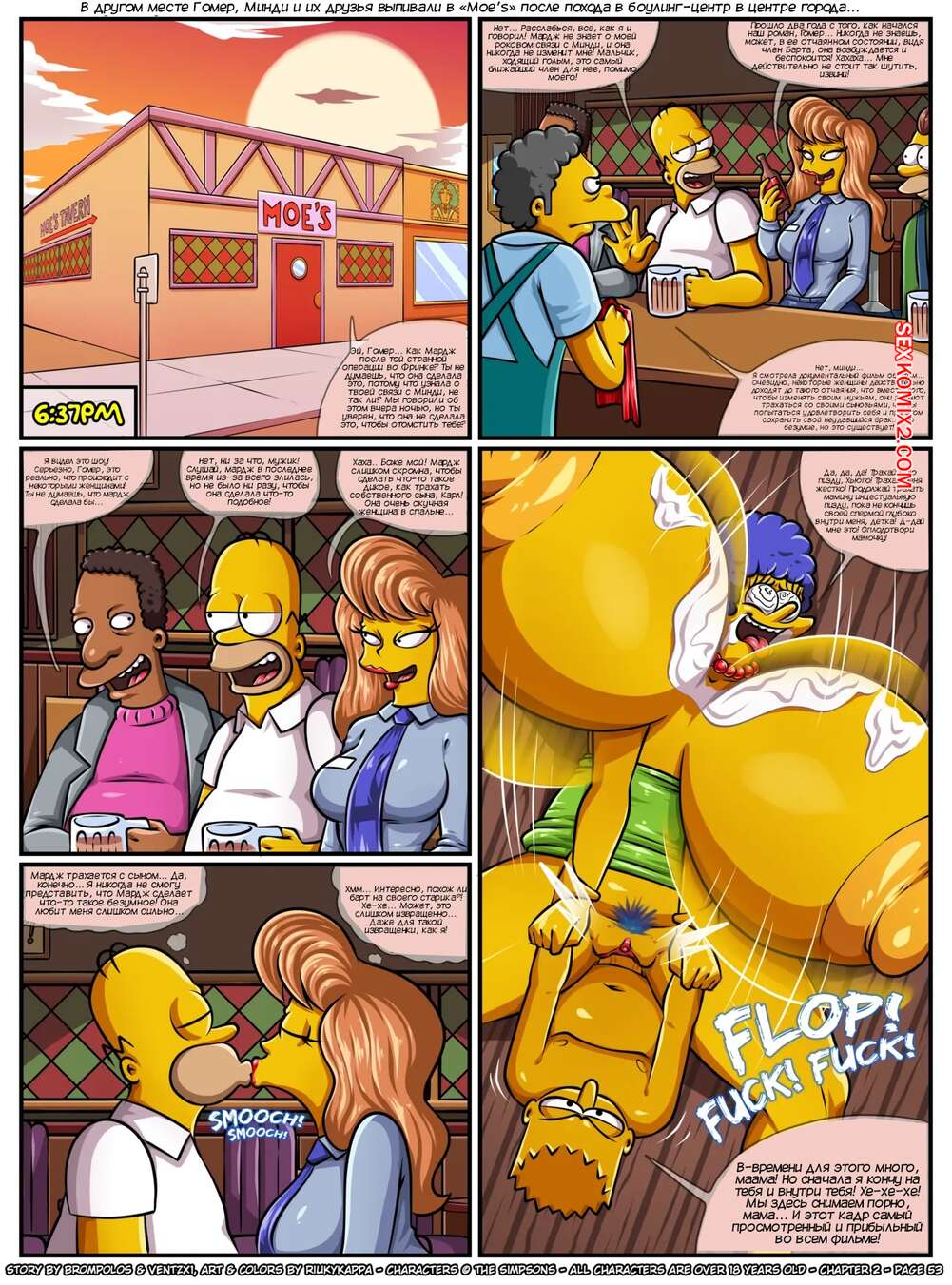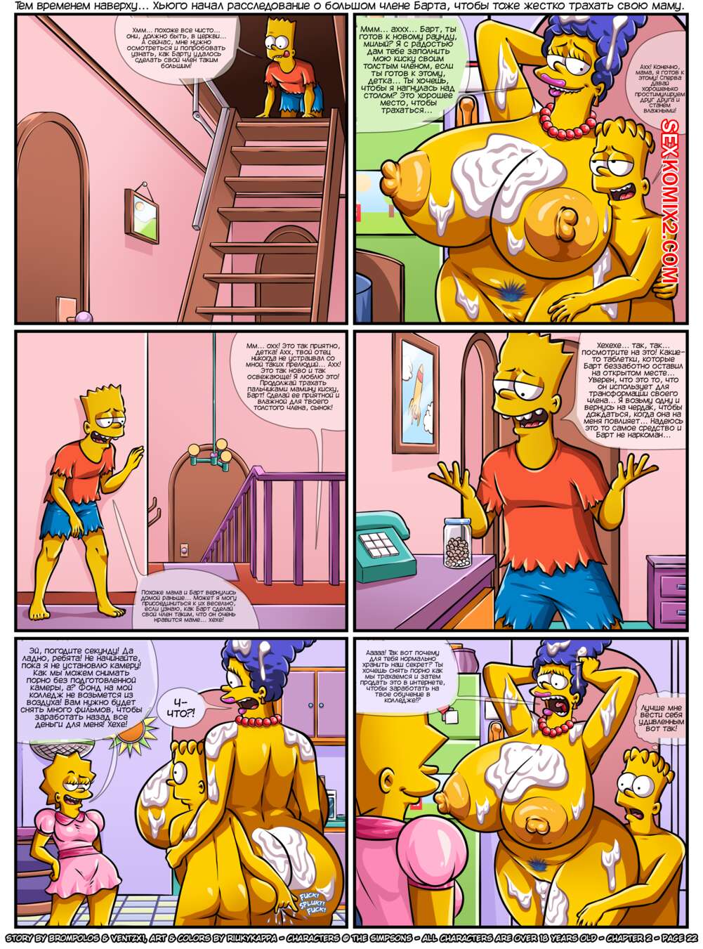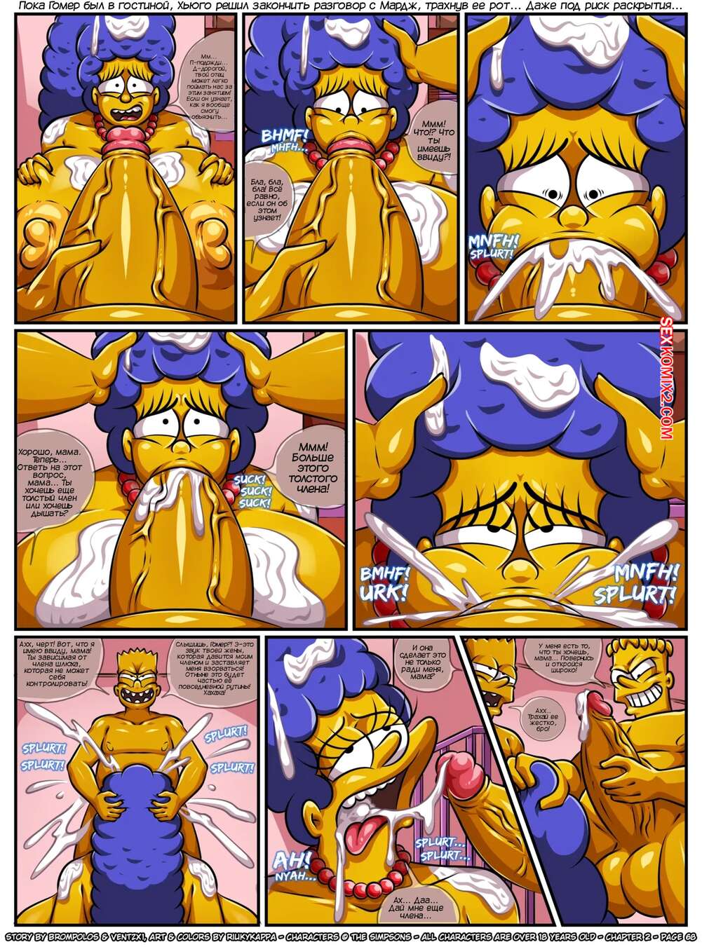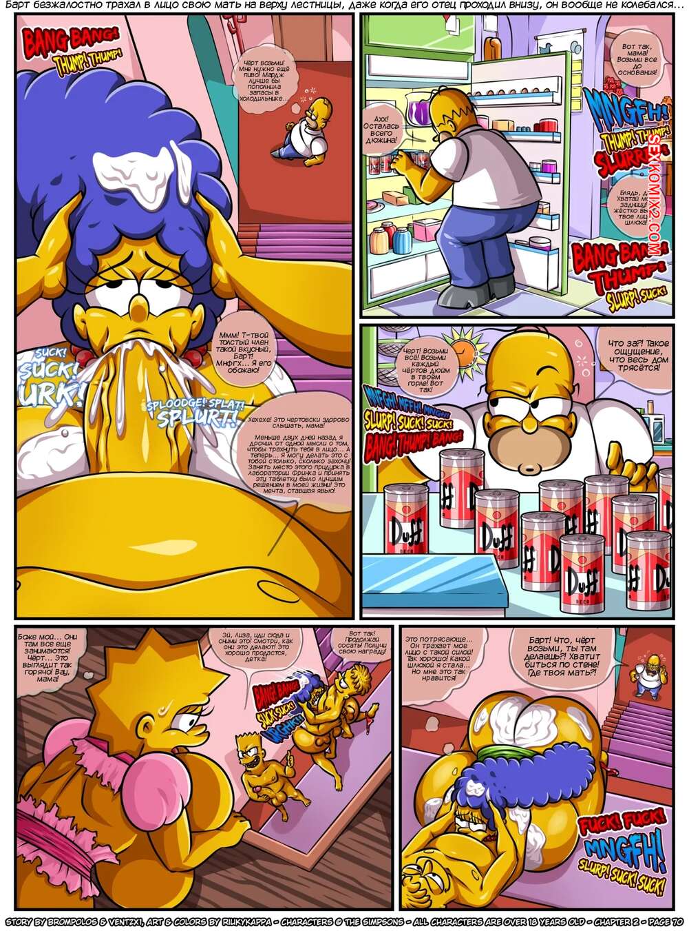 Порно комикс Симпсоны. Сексенштейны. Материнские семейные проблемы. Часть 2. Brompolos Сексуальная милфа Мардж отправилась со своей семьей в церковь. Там милфа невероятно возбудилась и позвала Барта уединиться, чтобы он ее хорошенько выебал и доставил ей огромное удовольствие.
