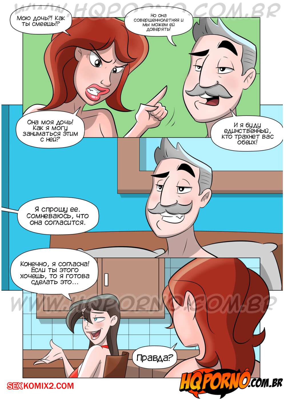 Порно комикс Извращенцы. Часть 11. Мамы дочери. Os pervertidos. Hqporno Горячая милфа осталась наедине со своей дочерью и они решили повеселиться. Красотки стали ласкать друг дружку, после чего занялись страстной лесбийской еблей.