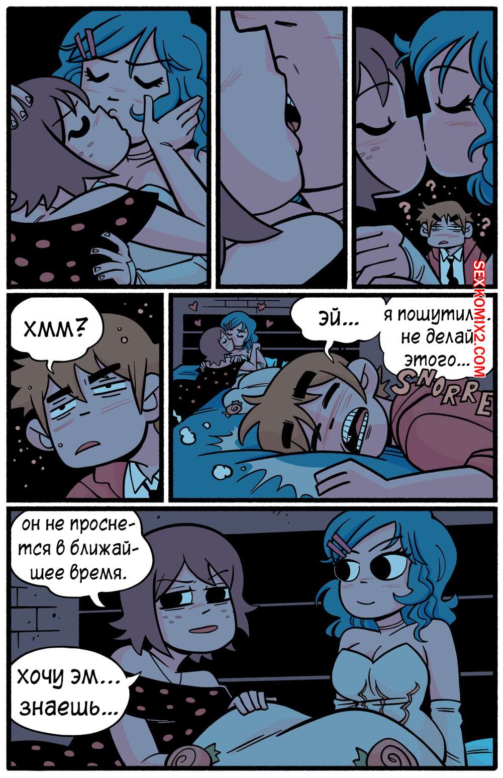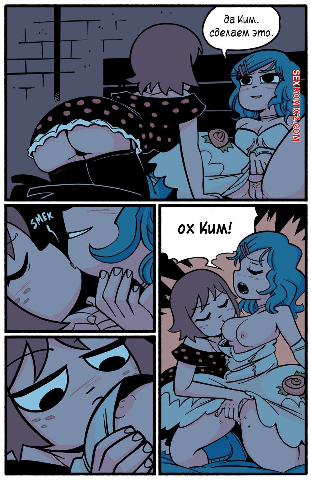 Порно комикс Scott Pilgrim. Ким x Рамона. Kim x Ramona. BonerBob Две горячие красотки были очень возбуждены и решили повеселиться, пока их дружок спал. Красотки разделись и занялись страстной лесбийской еблей, получив огромное удовольствие.