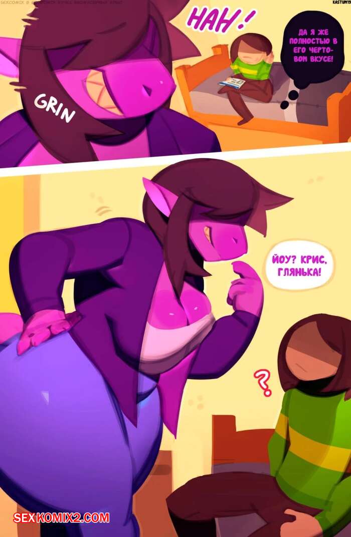 Порно комикс Deltarune. A Susie and Kris. svarzye Горячая сексуальная брюнетка была очень возбуждена и хотела трахаться. Она разделась перед своим дружком и отсосала его большой хуй, после чего дала ему себя выебать и кончить в нее.