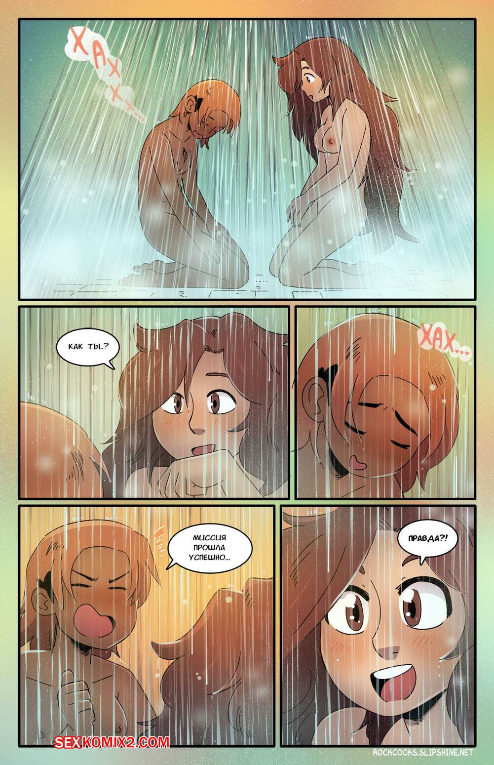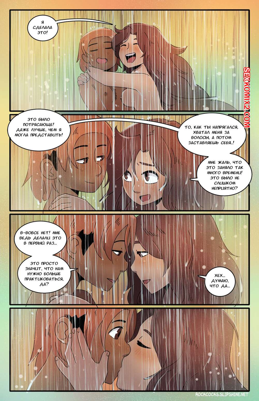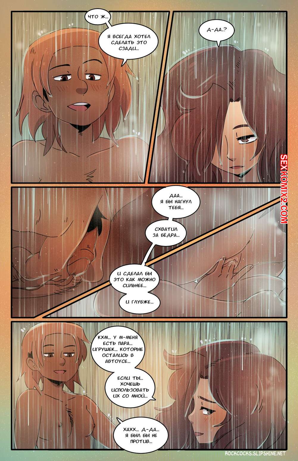 Порно комикс Рок хуй. The Rock Cocks. Часть 16. Rocket Roller Две сексуальные брюнетки отправились вместе принять душ. Девушки были очень возбуждены и решили повеселиться, поэтому они разделись и стали ласкать пизденки друг дружки.
