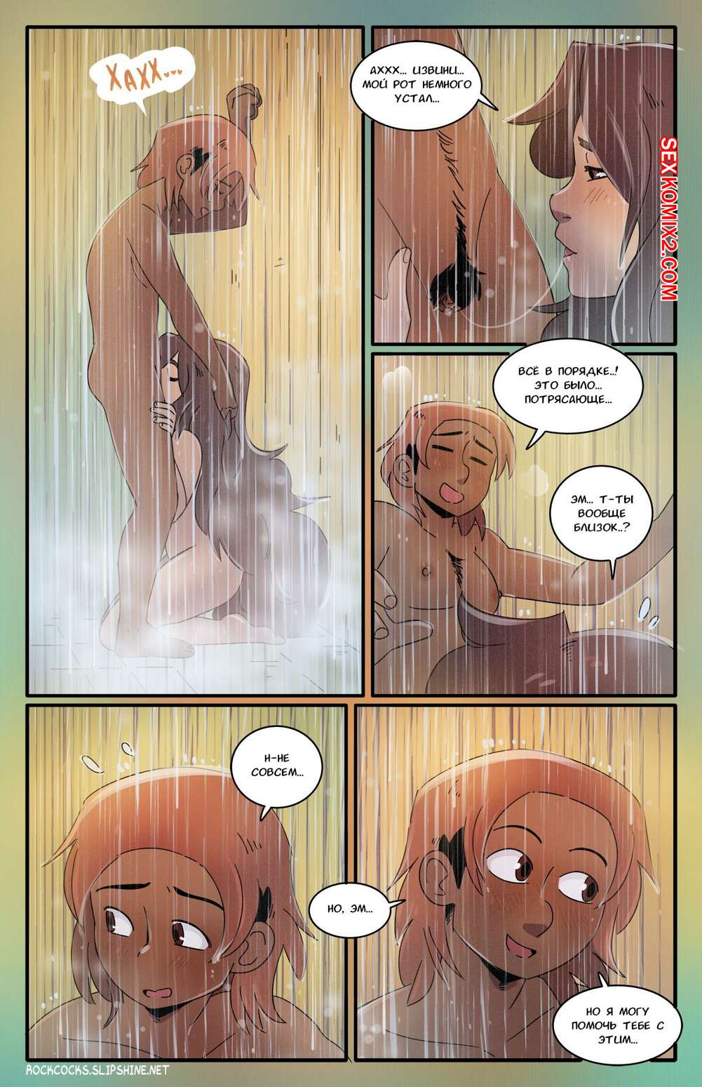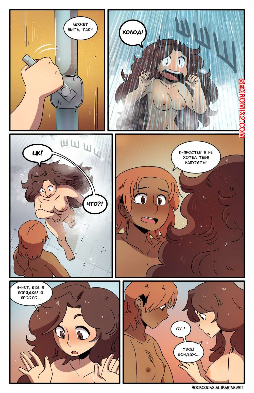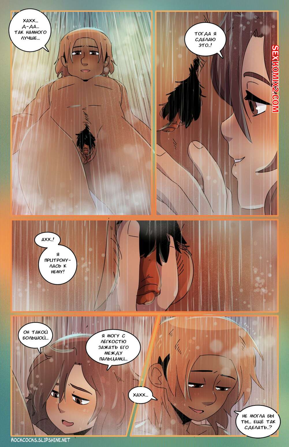 Порно комикс Рок хуй. The Rock Cocks. Часть 16. Rocket Roller Две сексуальные брюнетки отправились вместе принять душ. Девушки были очень возбуждены и решили повеселиться, поэтому они разделись и стали ласкать пизденки друг дружки.