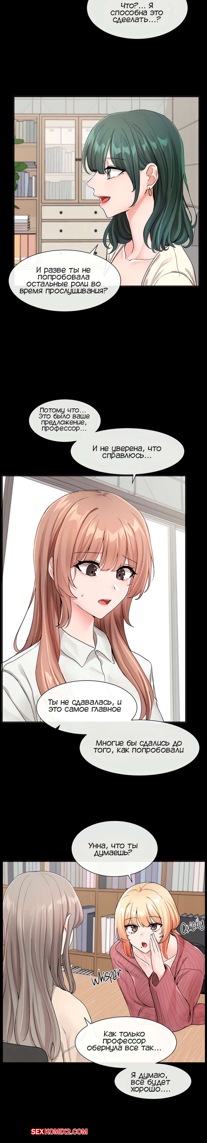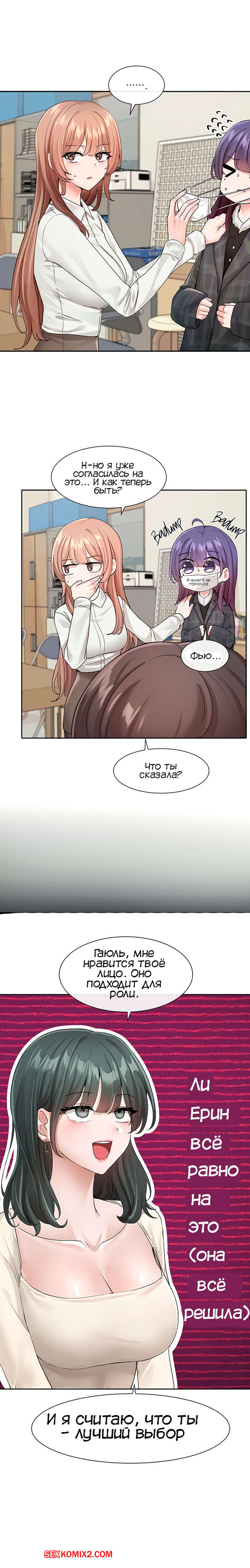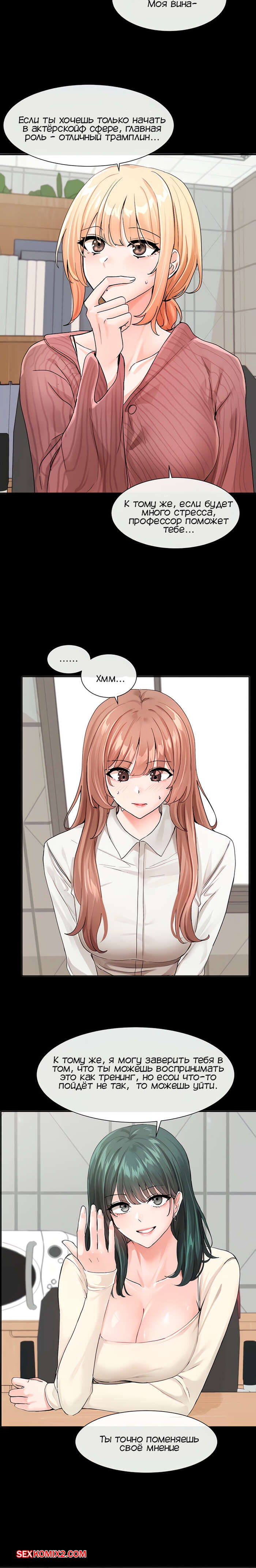Порно комикс Театральный клуб. Часть 120. Circles. Theater cociety Горячие девушки собрались в школьном кабинете, чтобы обсудить свои дела. Между красотками началась дискуссия, которую они увлеченно развивали.