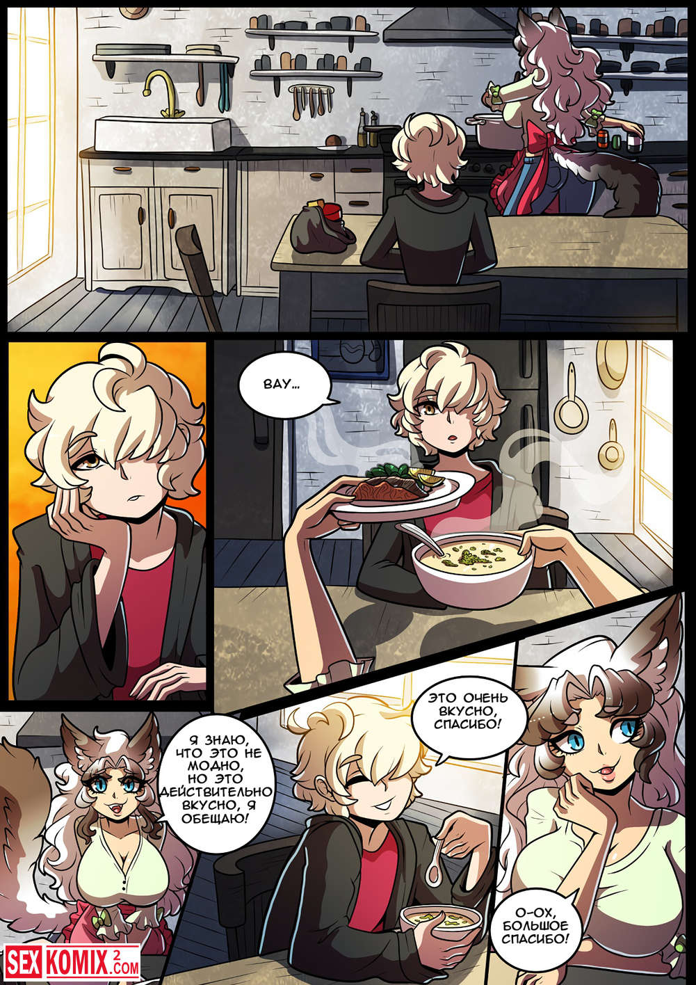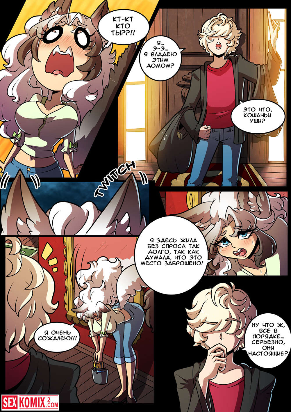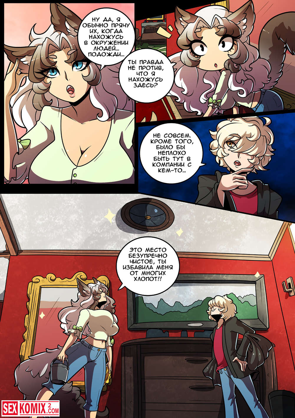 Порно комикс Feline Chateau. Фурри красотка пришла к своему другу в комнату по среди ночь и села на его член.