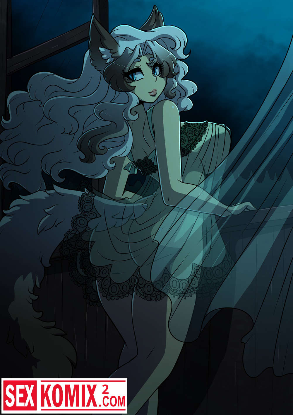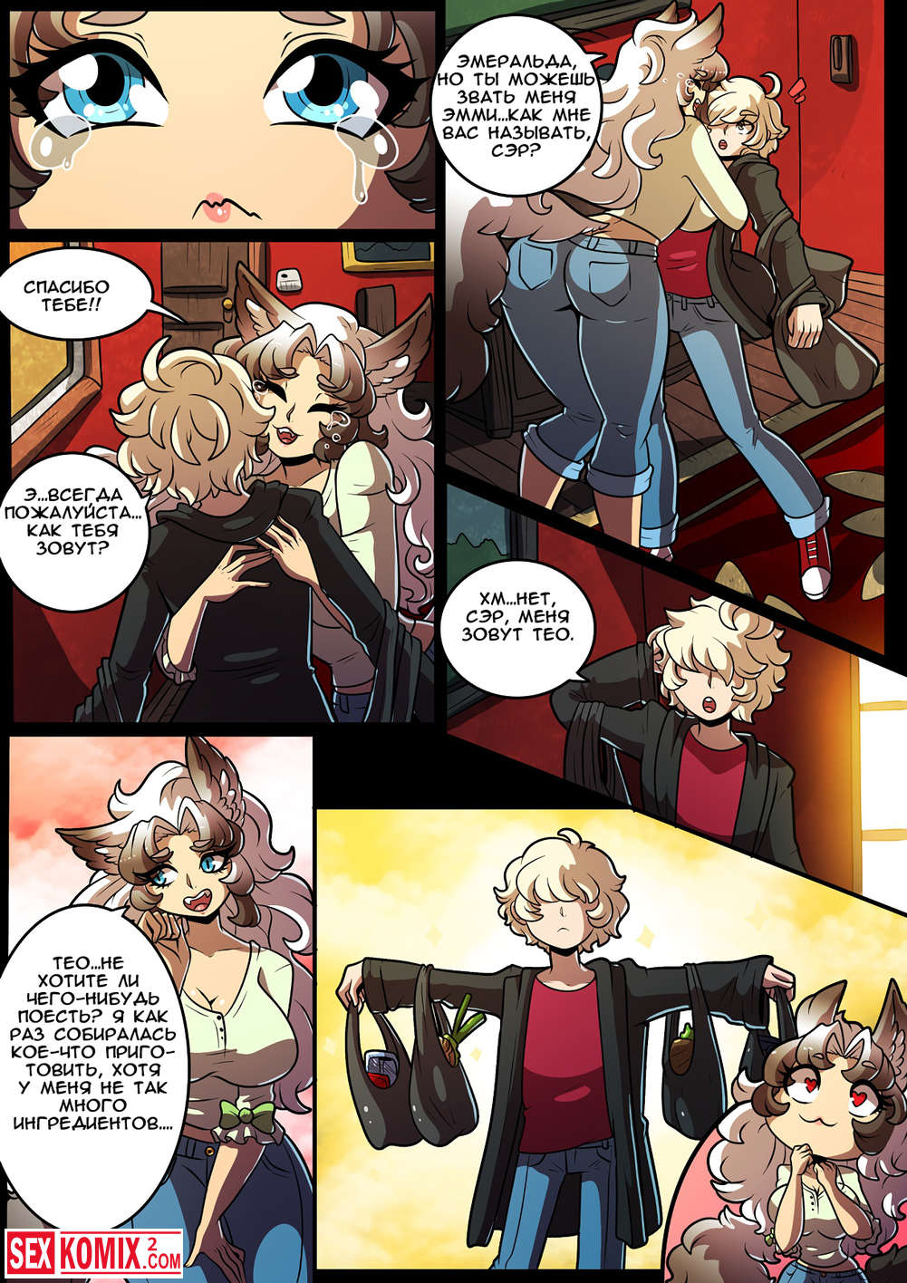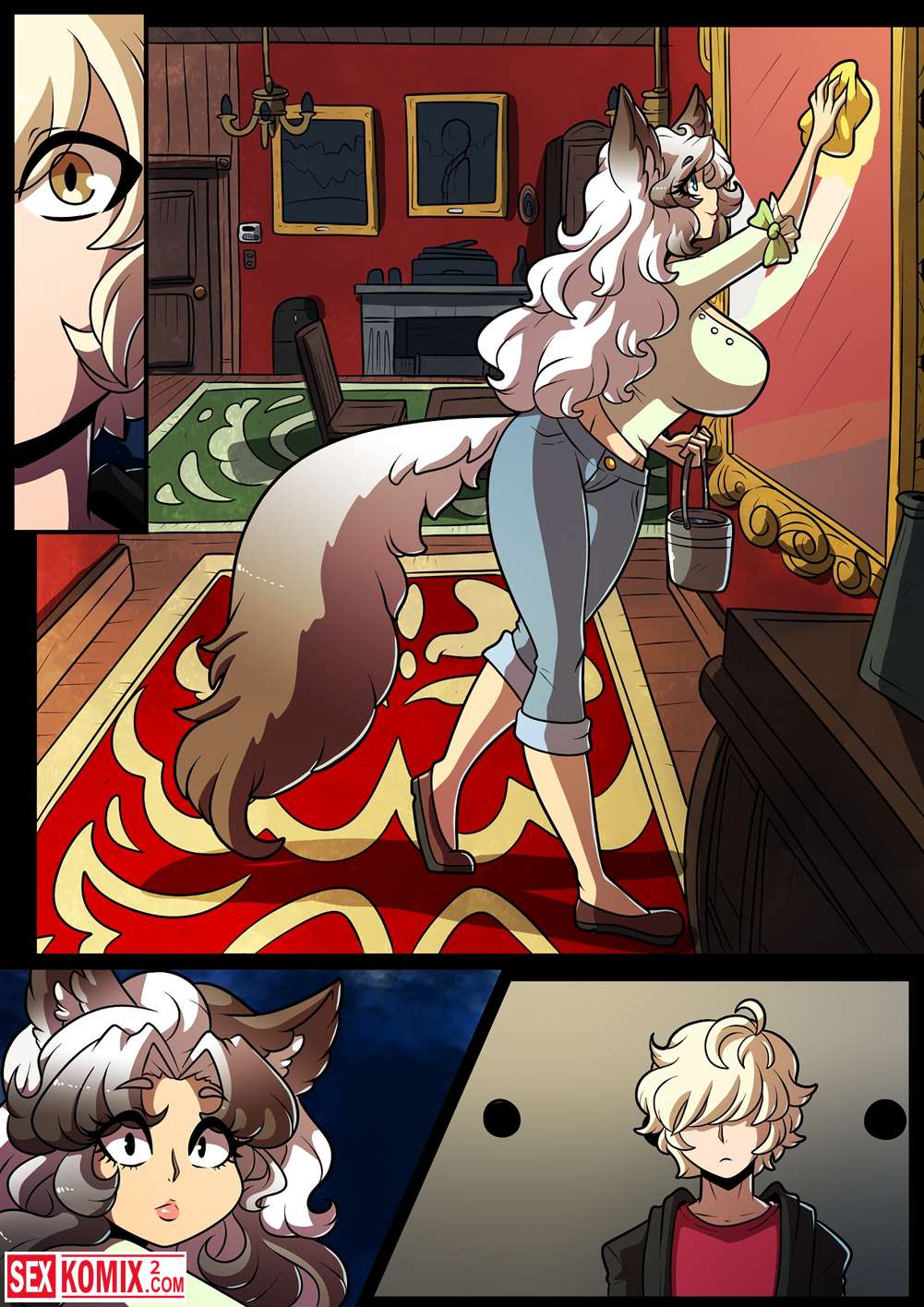 Порно комикс Feline Chateau. Фурри красотка пришла к своему другу в комнату по среди ночь и села на его член.
