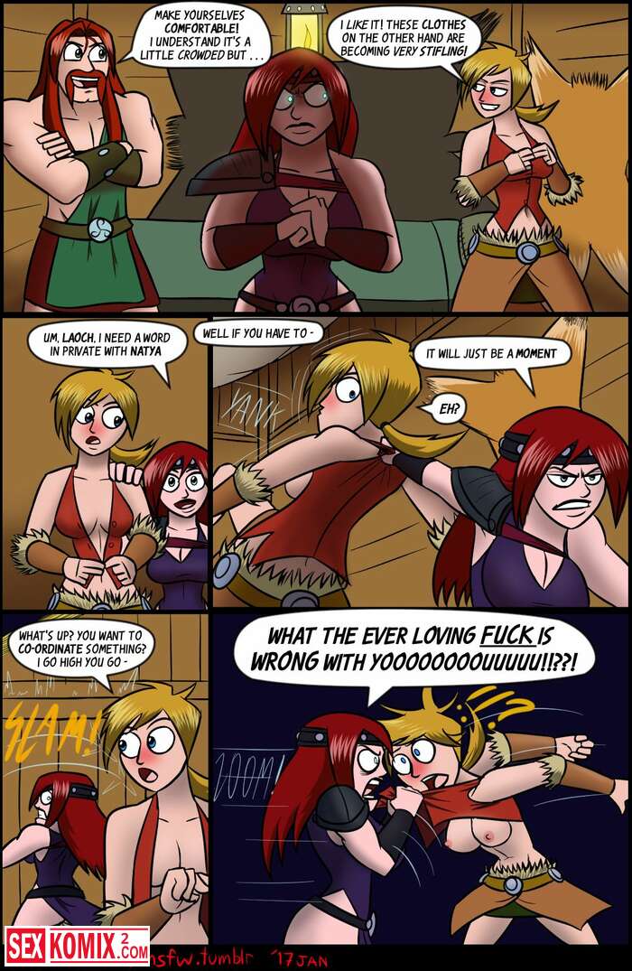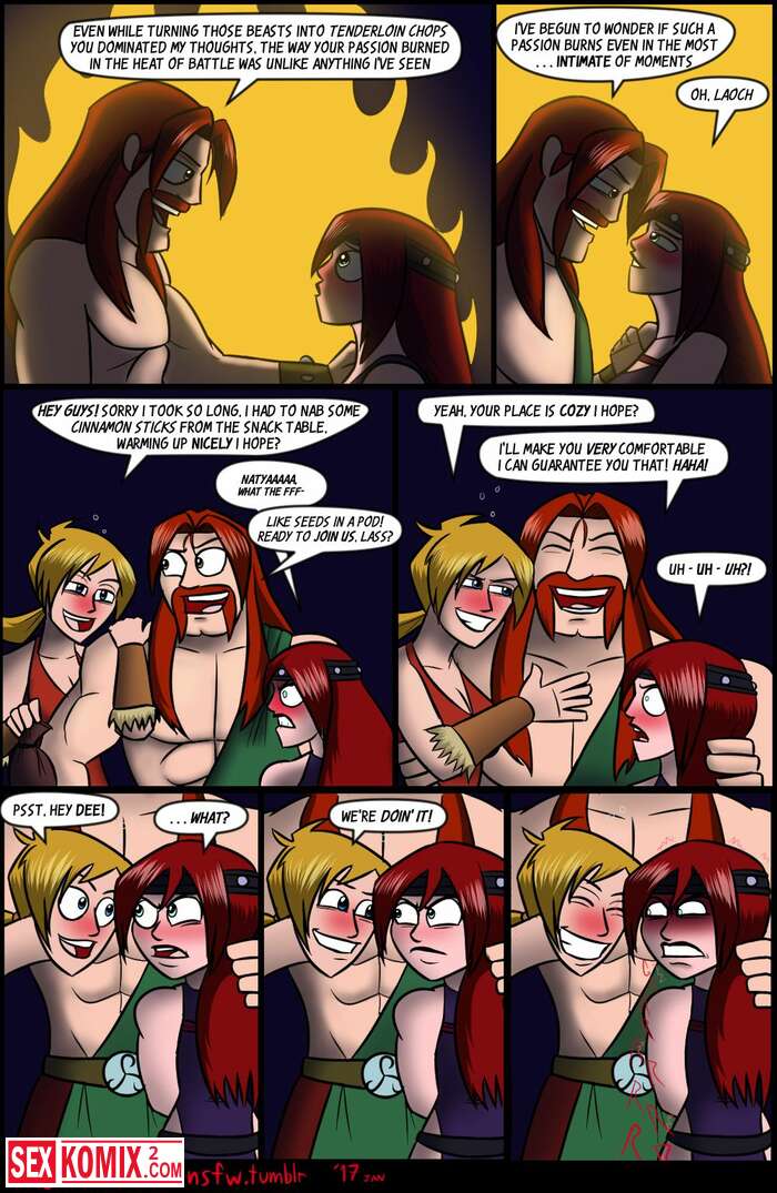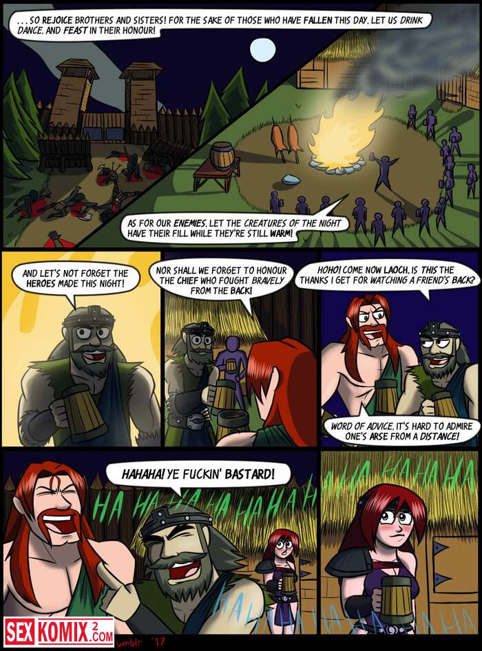 Порно комикс После вечеринки. The Arthman. Парень и девушка викинг очень повеселились и после нескольких кружек пива вместе легли спать.
