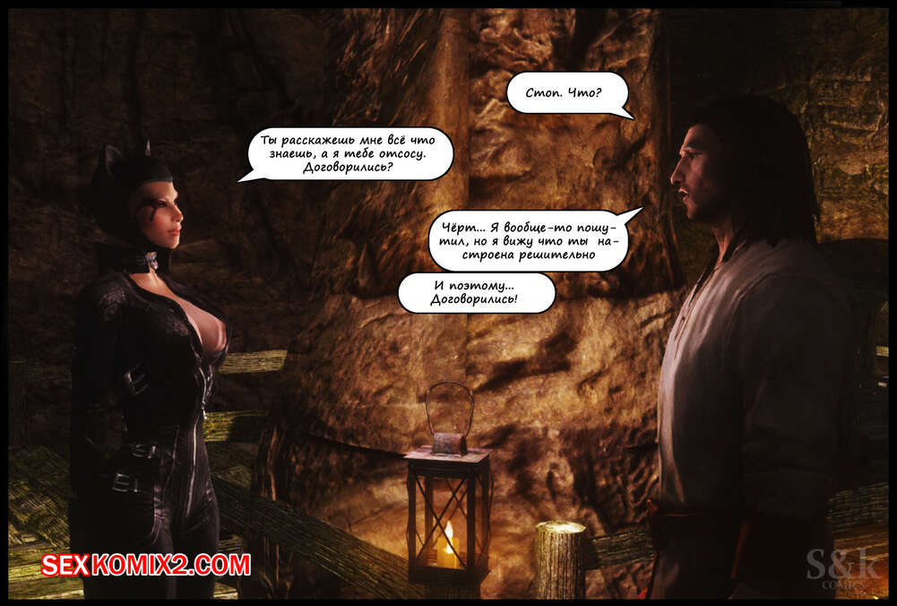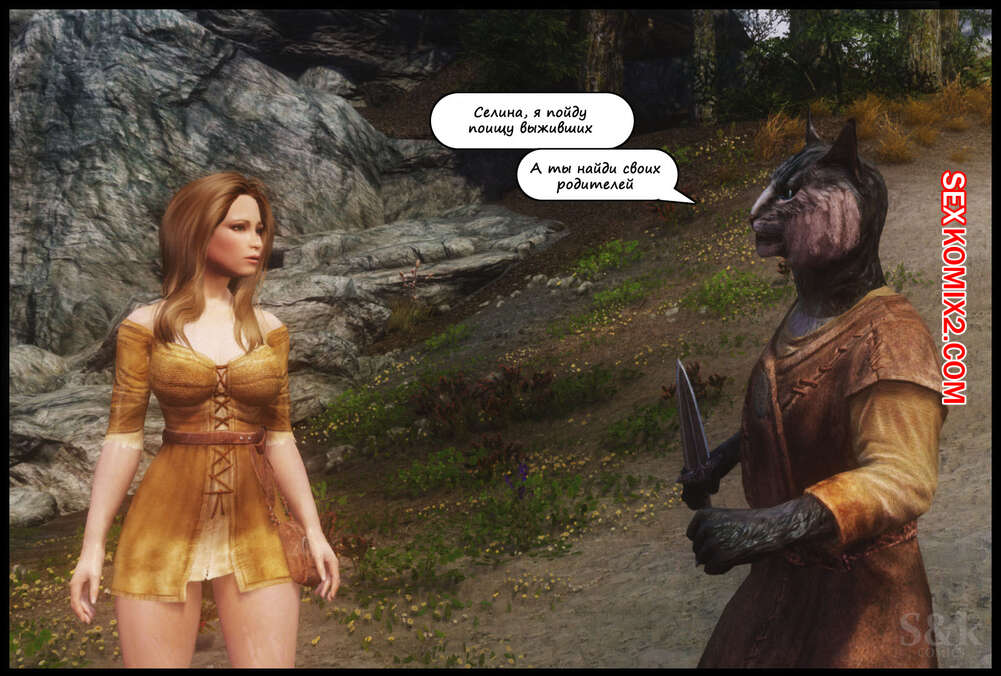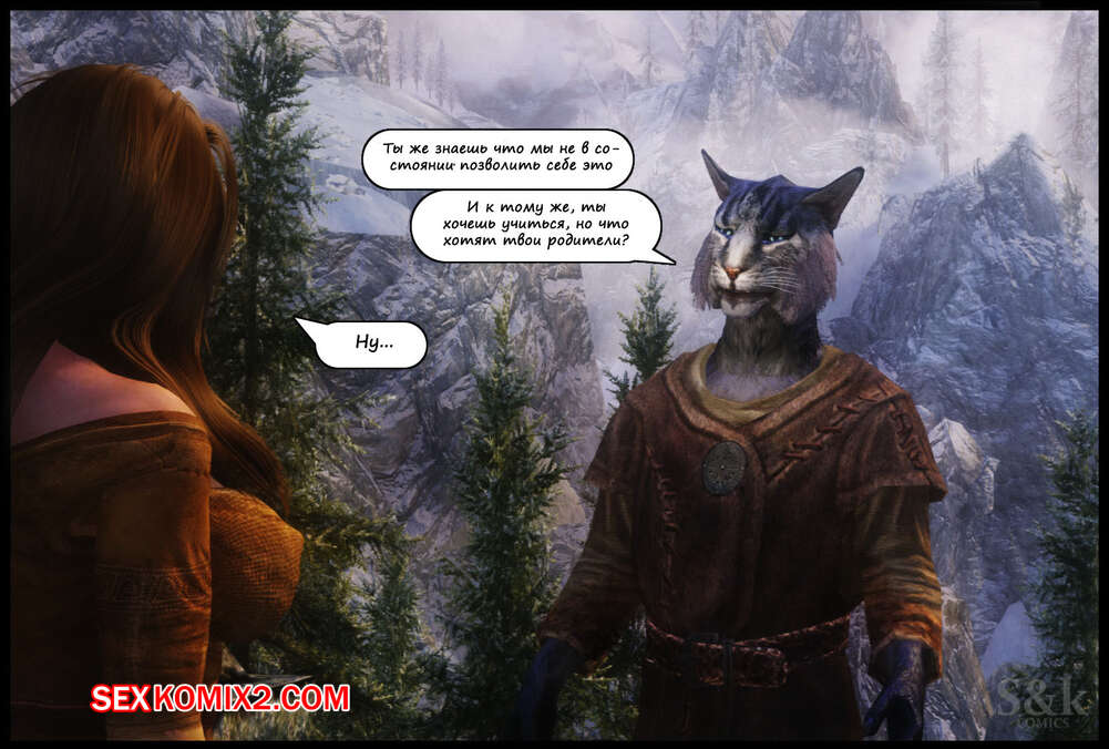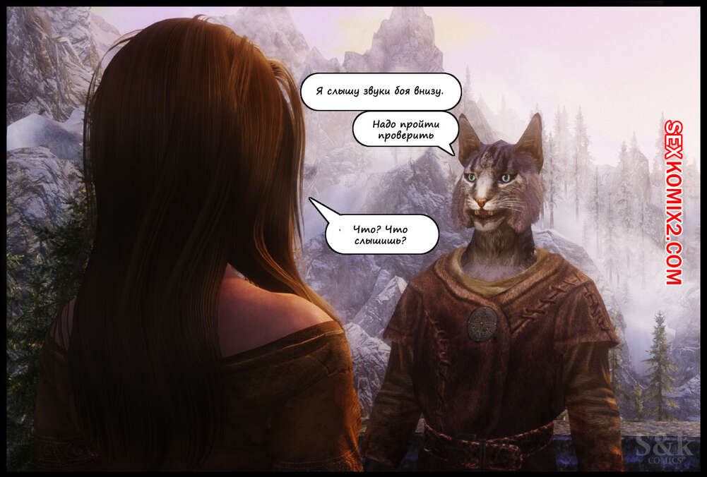 Порно комикс The Elder Scrolls. Женщина Кошка. Часть 1. SKcomics Сексуальная брюнетка отправляется в путешествие, где она встречает много парней на своем пути, которых ей необходимо ублажить. Красотка раздевается и сосет хуи парней, после чего дает им себя выебать.