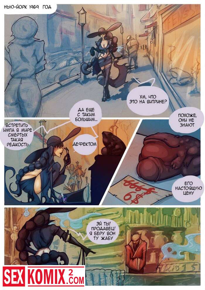 Порно комикс Ведьма и Жаба. Заклинательница призвала огромного монстра, чтобы он уталил сексуальный голод женщины.