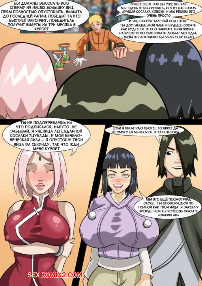 Порно комикс Наурто. Команда Хинаты против команды Сакуры. Team Hinata Vs Team Sakura. Парни устроили соревнования между девушками, они заставили их на скорость сосать их хуи, по те не кончат.