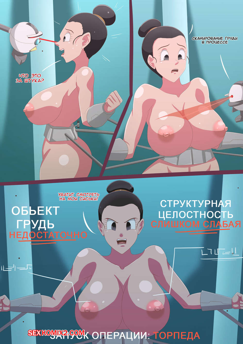 Порно комикс Dragon Ball. Операция Торпедо. Operation Torpedo. MagnificentSexyGals Бульма пригласила Чичи, чтобы показать ей свое новое изобретение. Обе девушки оказались в комнате, где механические руки сорвали на девушках всю одежду и увеличили их сиськи, которые теперь похожи на торпеды.