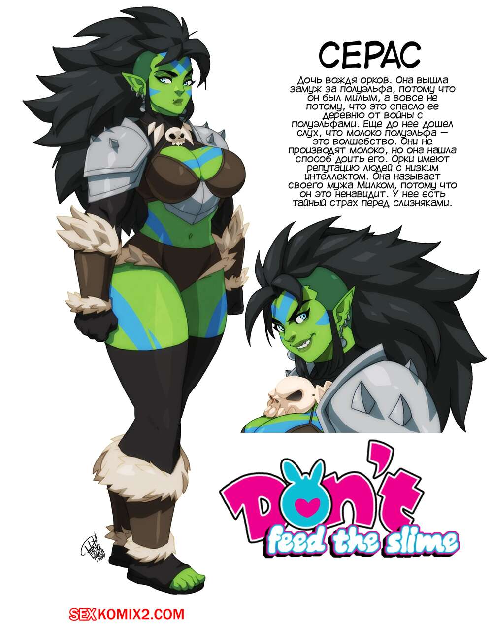 Порно комикс Не корми слизь. Dont feed the slime. Tovio Rogers. Горячая красотка орк была очень возбуждена во время приключения и решила повеселиться со своим мужем. Она встала на колени и стала сосать его большой хуй, но им помешала девушка слизь, желающая получить молочко парня..