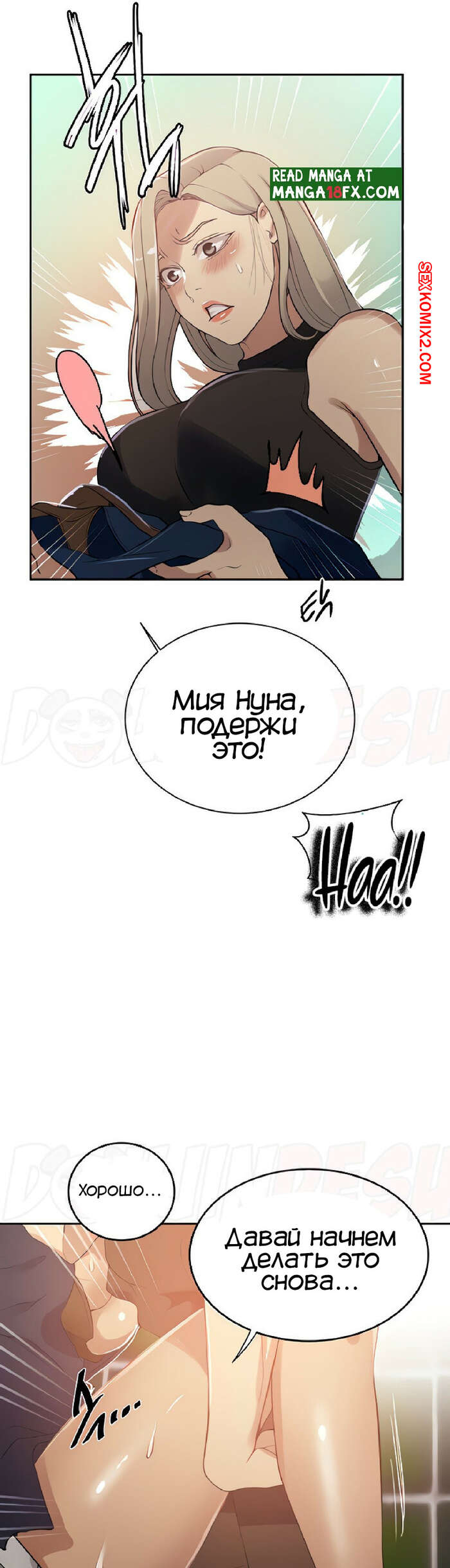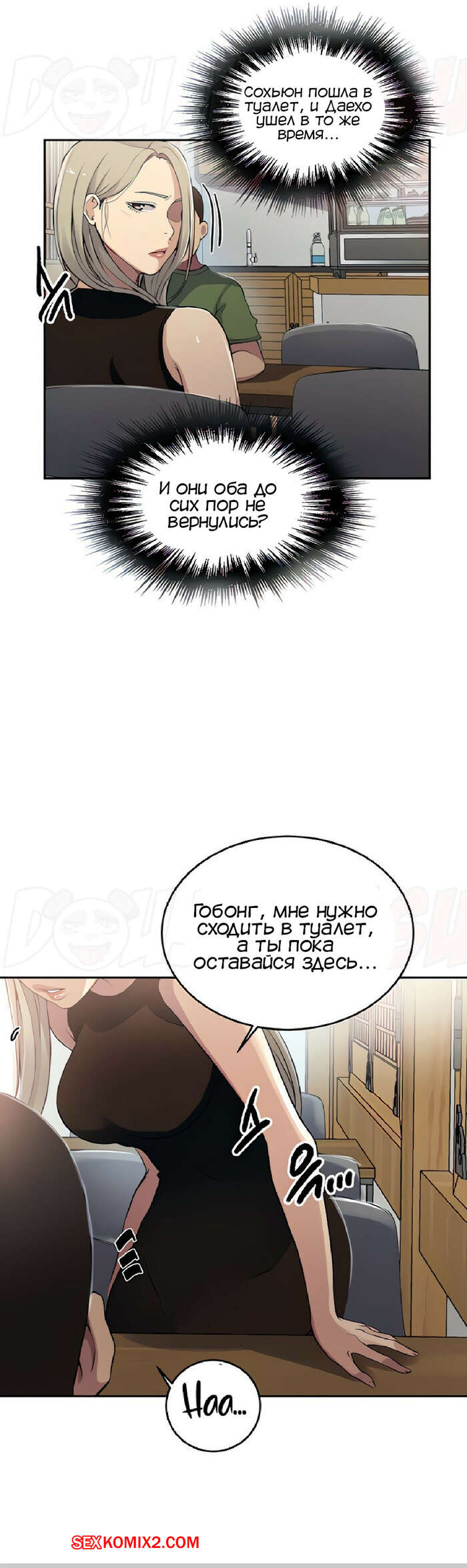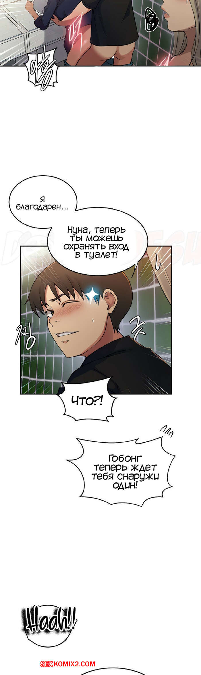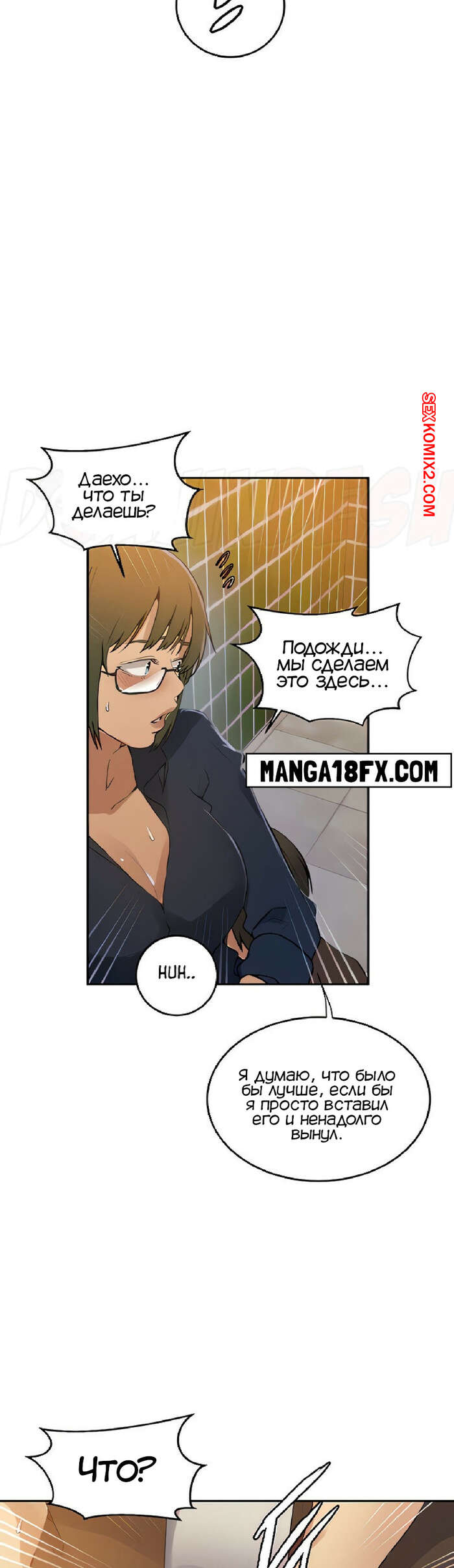 Порно комикс Тайное обучение. Часть 188. Secret Class Даехо пошел в женский туалет за Сохьюн, где стал приставать к девушке. Он был сильно возбужден, поэтому скорее снял с девушки трусики, чтобы выебать ее пизденку.