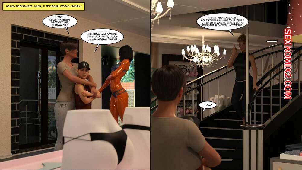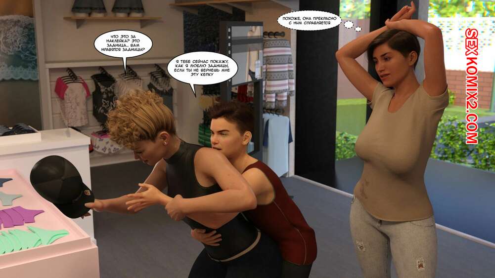 Порно комикс Как стать порнозвездой. Часть 6. How to become a pornstar. Nethoc Бен вместе со своей мамой отправились в магазин, чтобы прикупить ей новый наряд. Там Тэш высказала им свою идею о совместной работе на аккаунтом Onlyfans, которая заинтересовала парня.