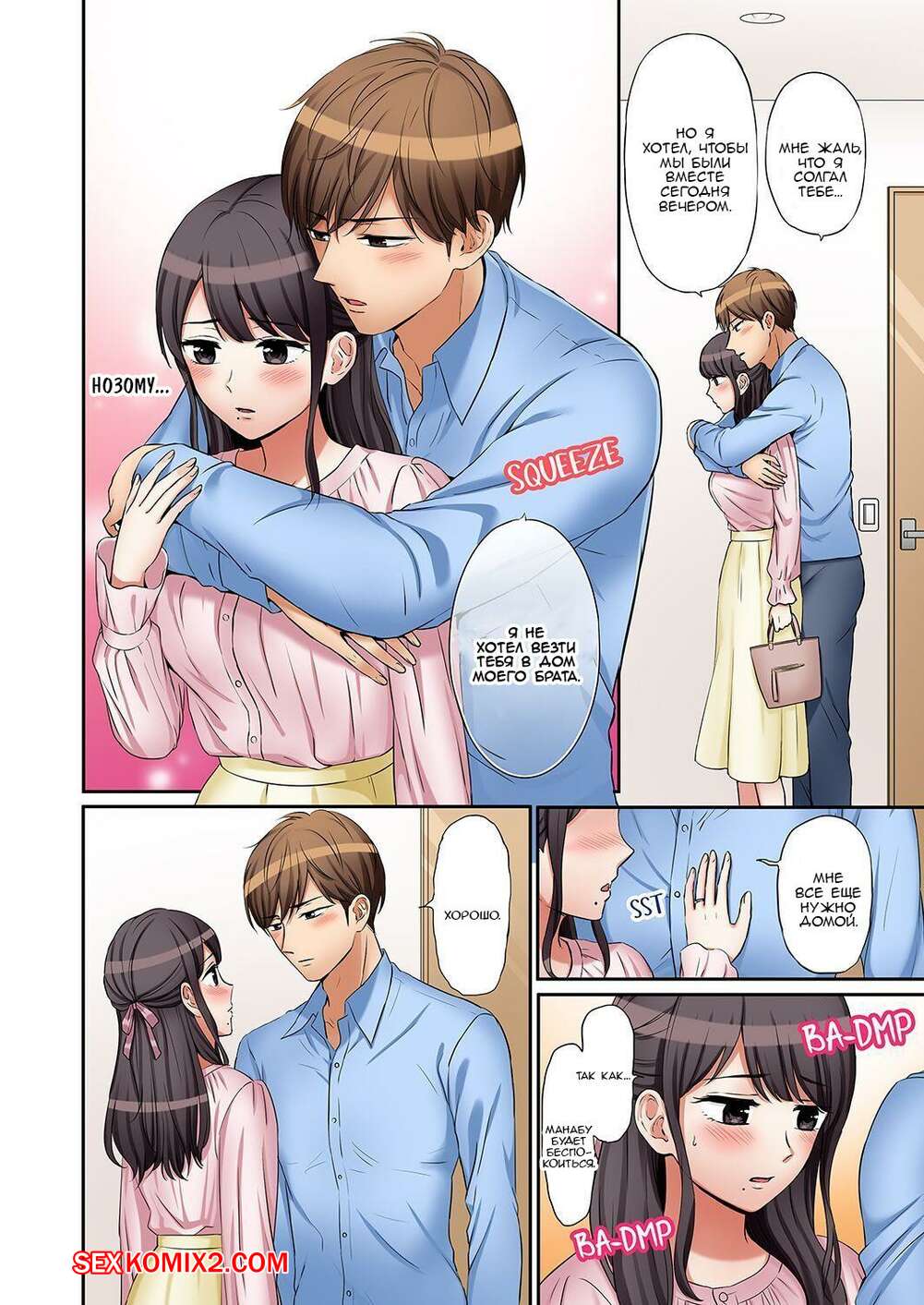 Порно комикс Ты можешь кончить еще три раза. Части 26 и 27 Парень остался наедине с женой своего брата и стал к ней приставать. Он раздел девушку и начал ласкать ее большие сиськи, после чего хорошенько ее выебал.