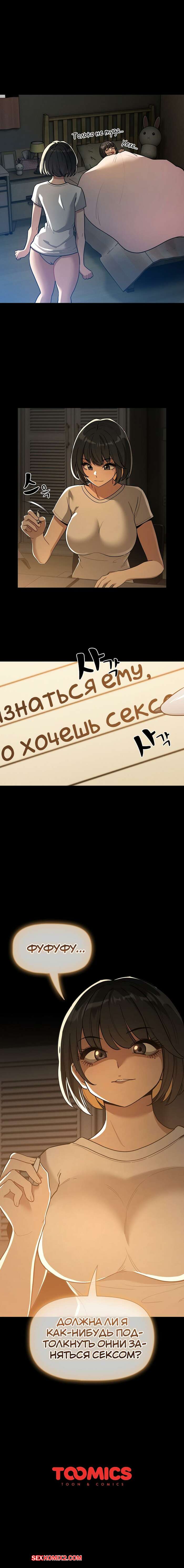 Порно комикс Частные уроки в эти трудные времена. Части 68 и 69 и 70 Сексуальная брюнетка была очень возбуждена. Она усадила парня на кровать и разделась перед ним, после чего стала сосать его большой хуй, желая поскорее поебаться.
