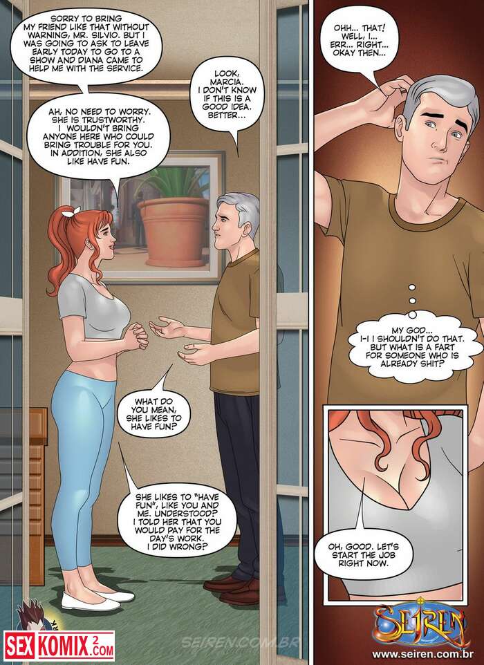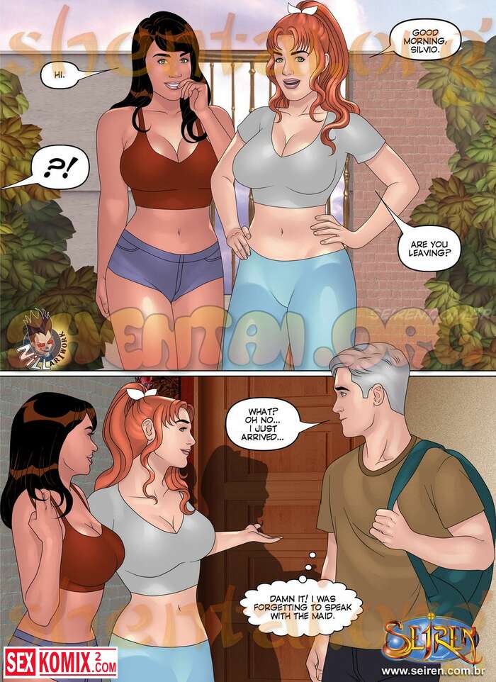 Порно комикс Подозрение. Часть 3. Английский. Муж так и не понял, что его жена в курсе его любовницы. В это время девушка привела ещё свою подругу для секса с ним.