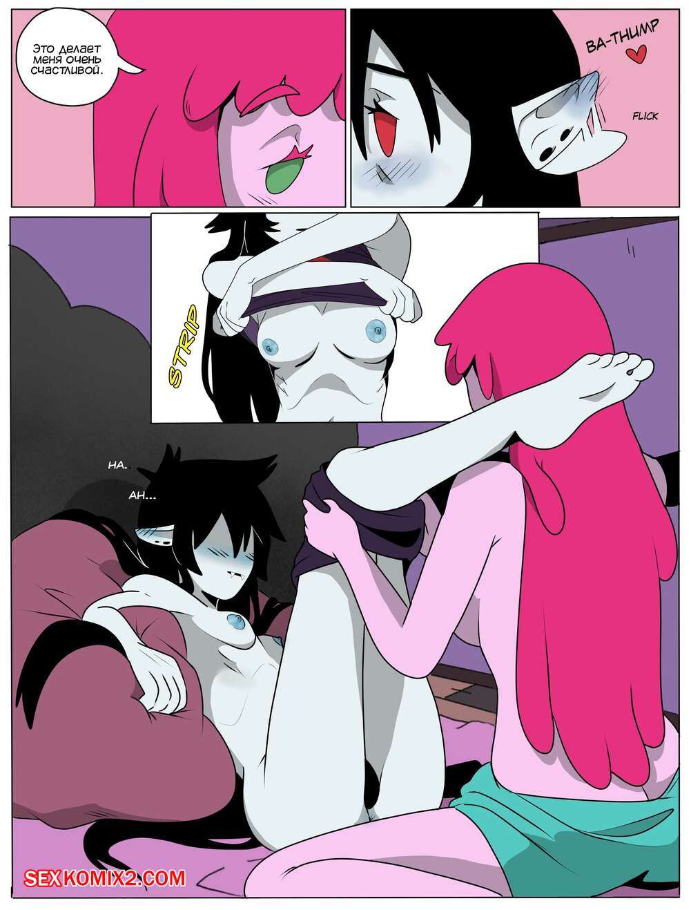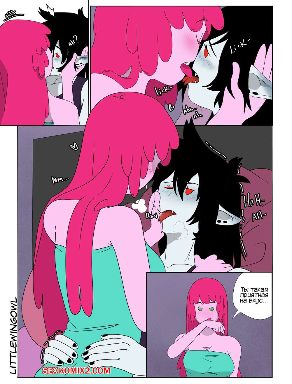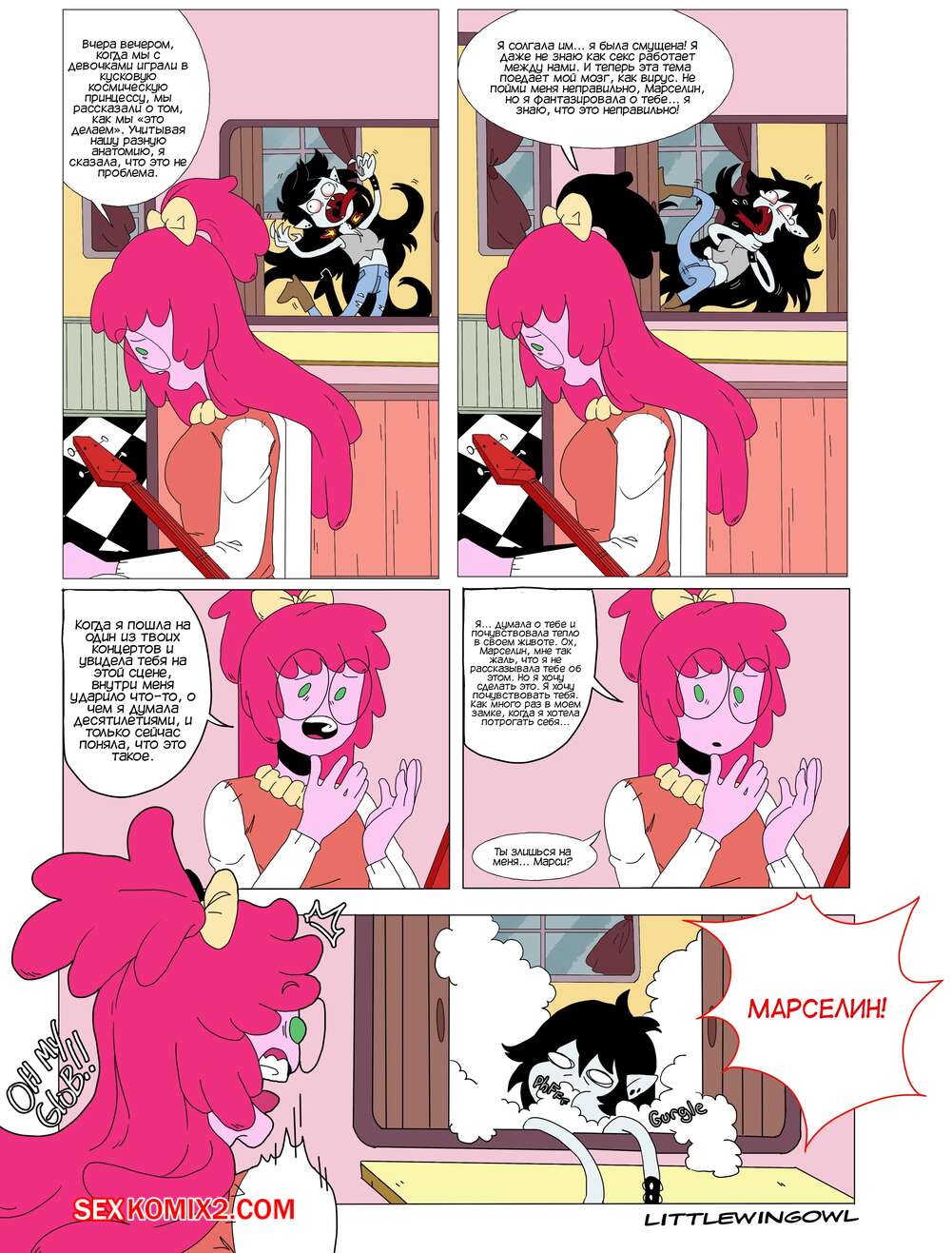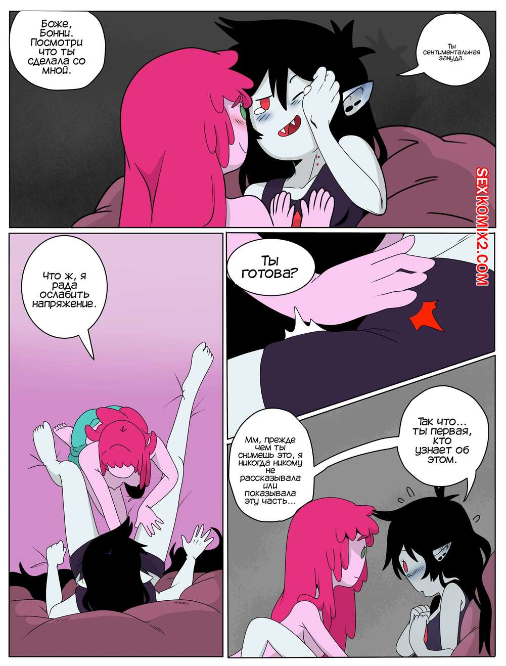 Порно комикс Adventure Time. Пузырь. Часть 1. Bubbline comic. LittleWingOwl. Марселин вернулась домой после после тяжелой недели и Бонни сообщила подруге, что хочет заняться с ней сексом. Марси долго отказывалась, боясь причинить подруге боль, но все таки они разделись и приступили к лесбийским играм.