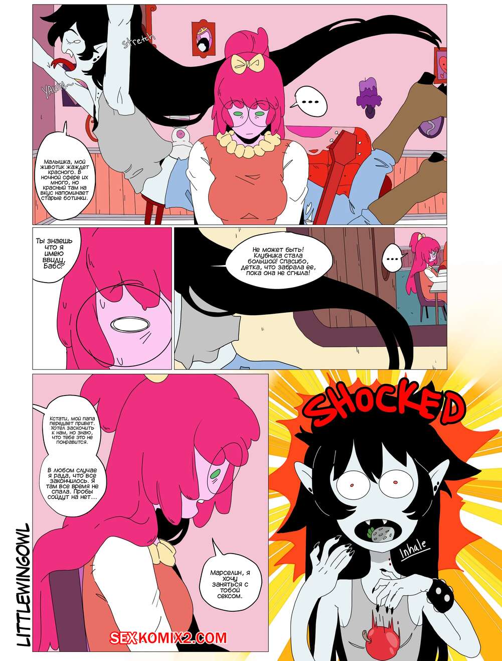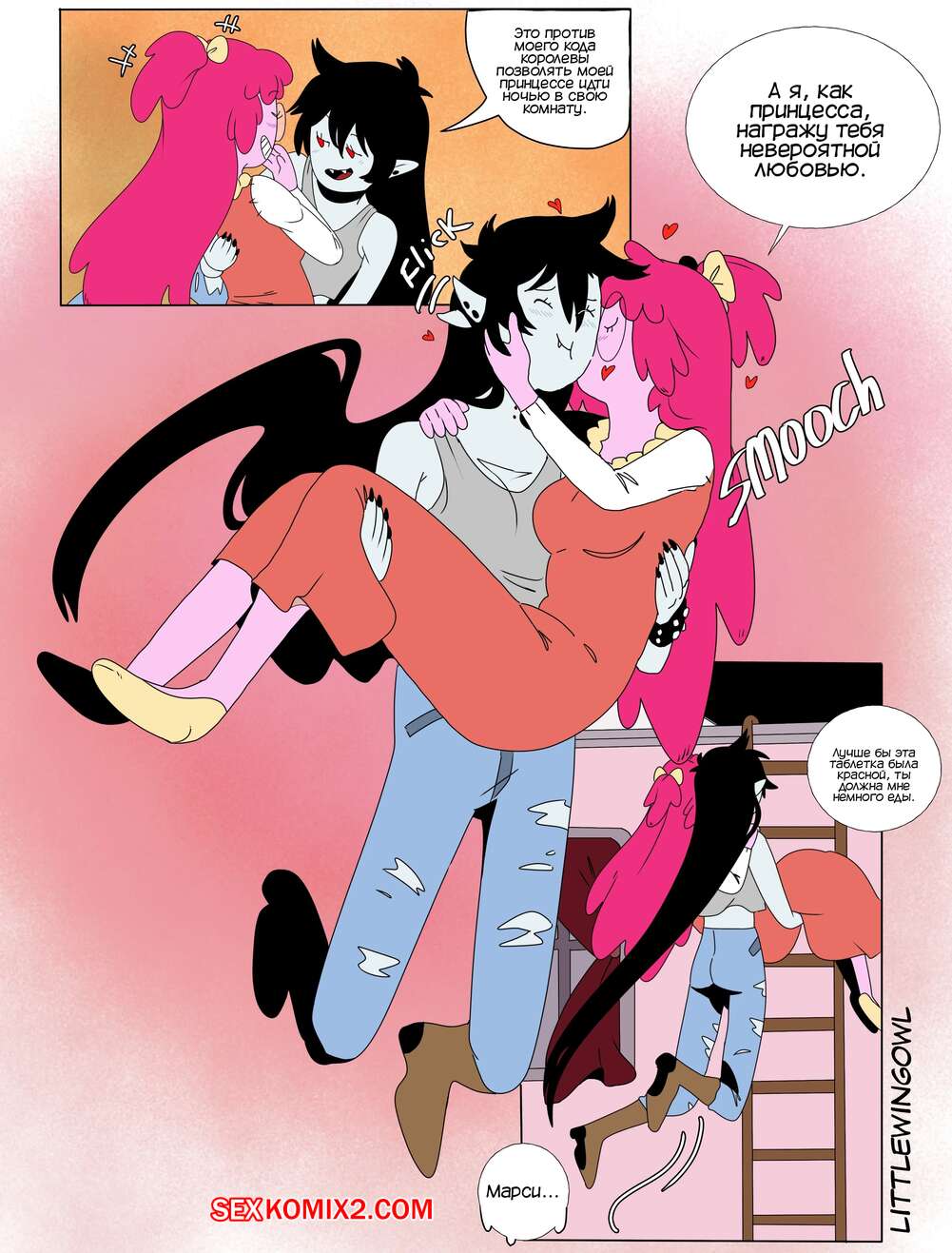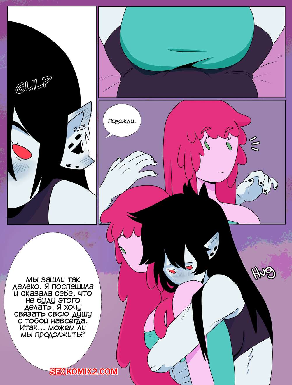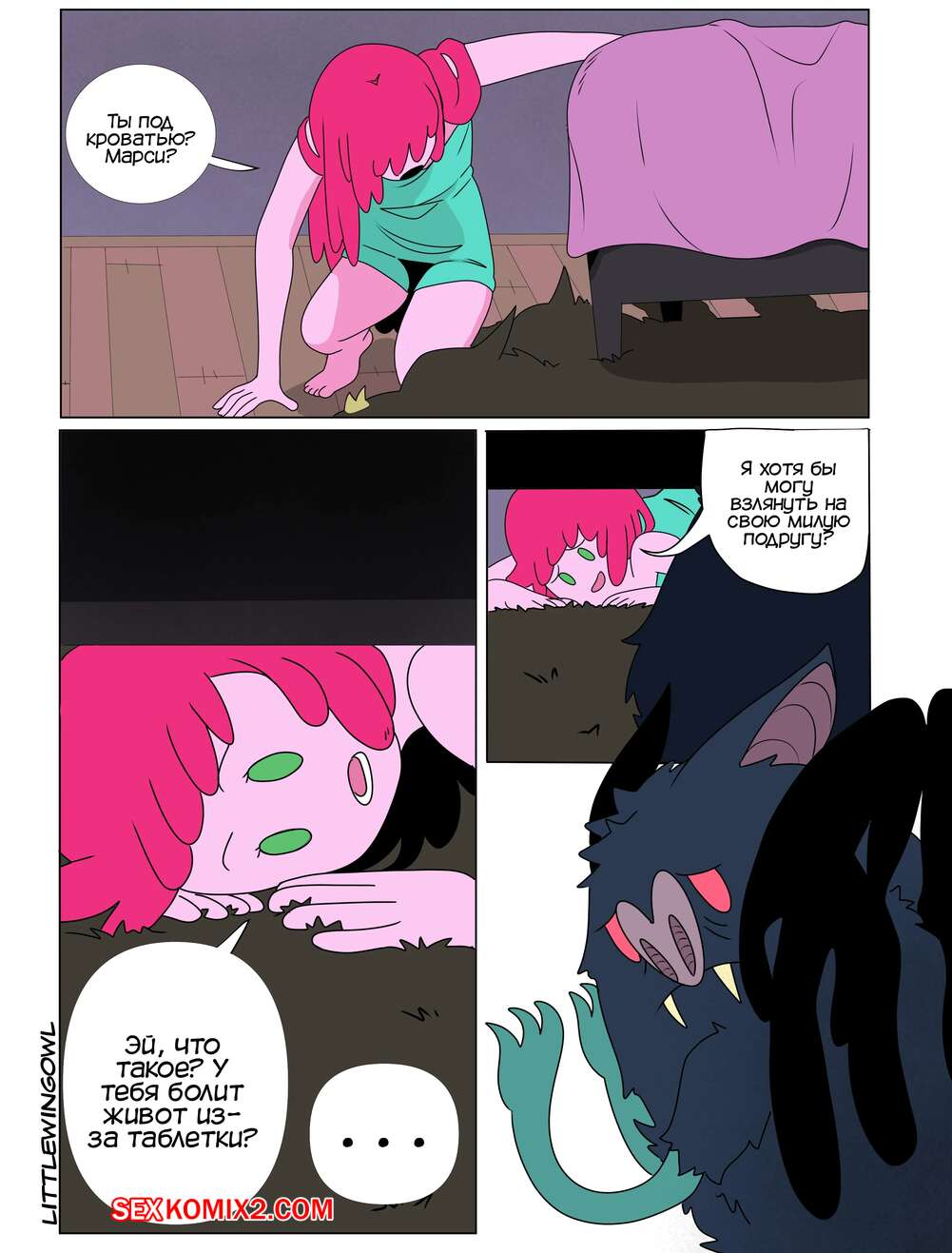 Порно комикс Adventure Time. Пузырь. Часть 1. Bubbline comic. LittleWingOwl. Марселин вернулась домой после после тяжелой недели и Бонни сообщила подруге, что хочет заняться с ней сексом. Марси долго отказывалась, боясь причинить подруге боль, но все таки они разделись и приступили к лесбийским играм.