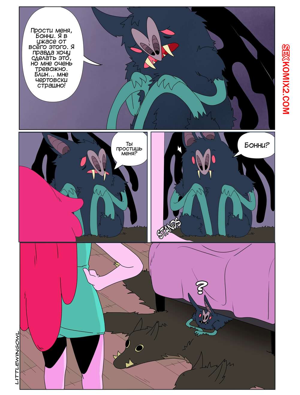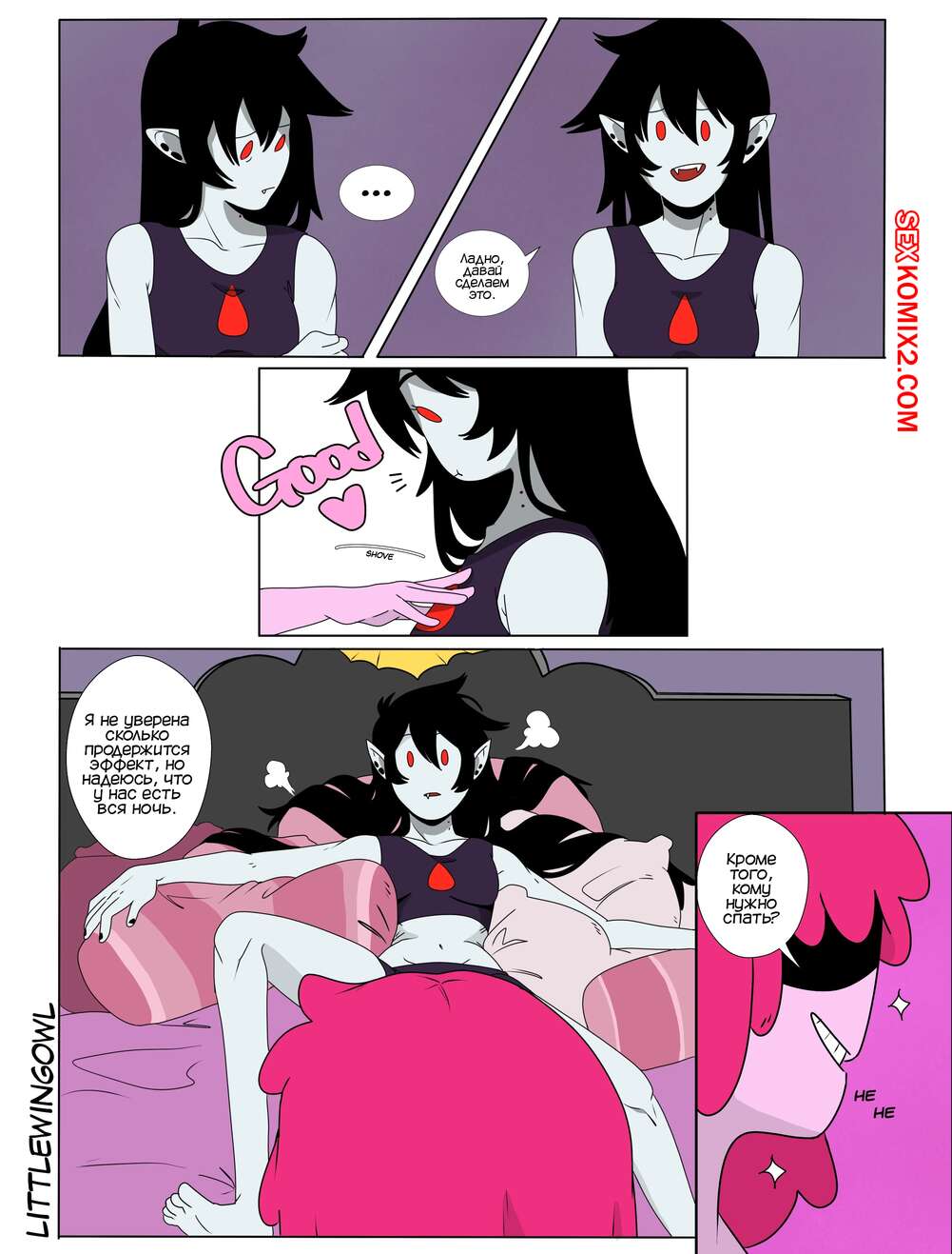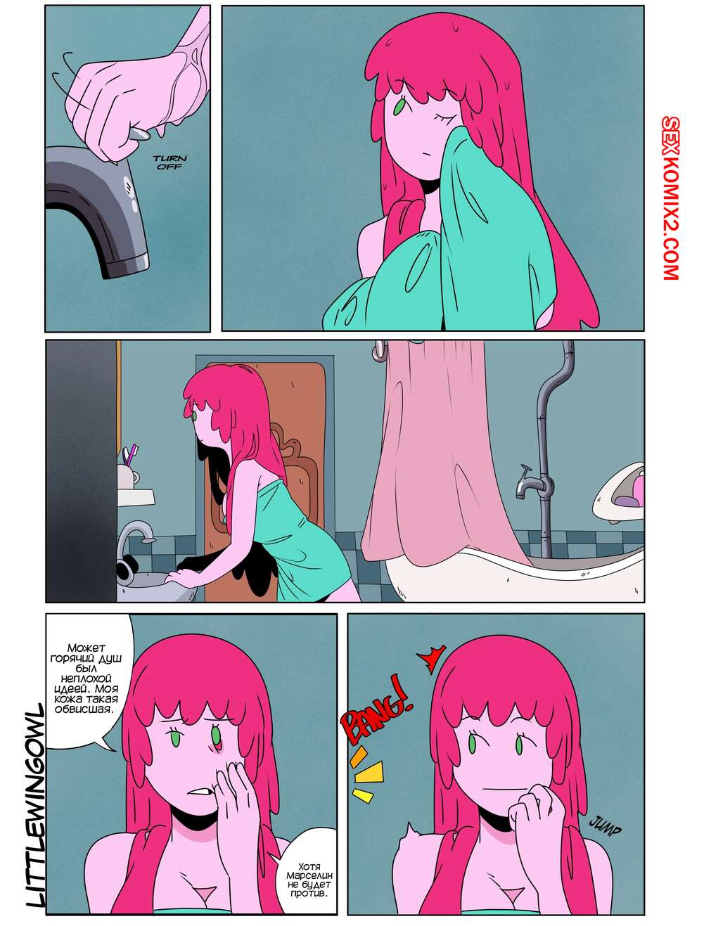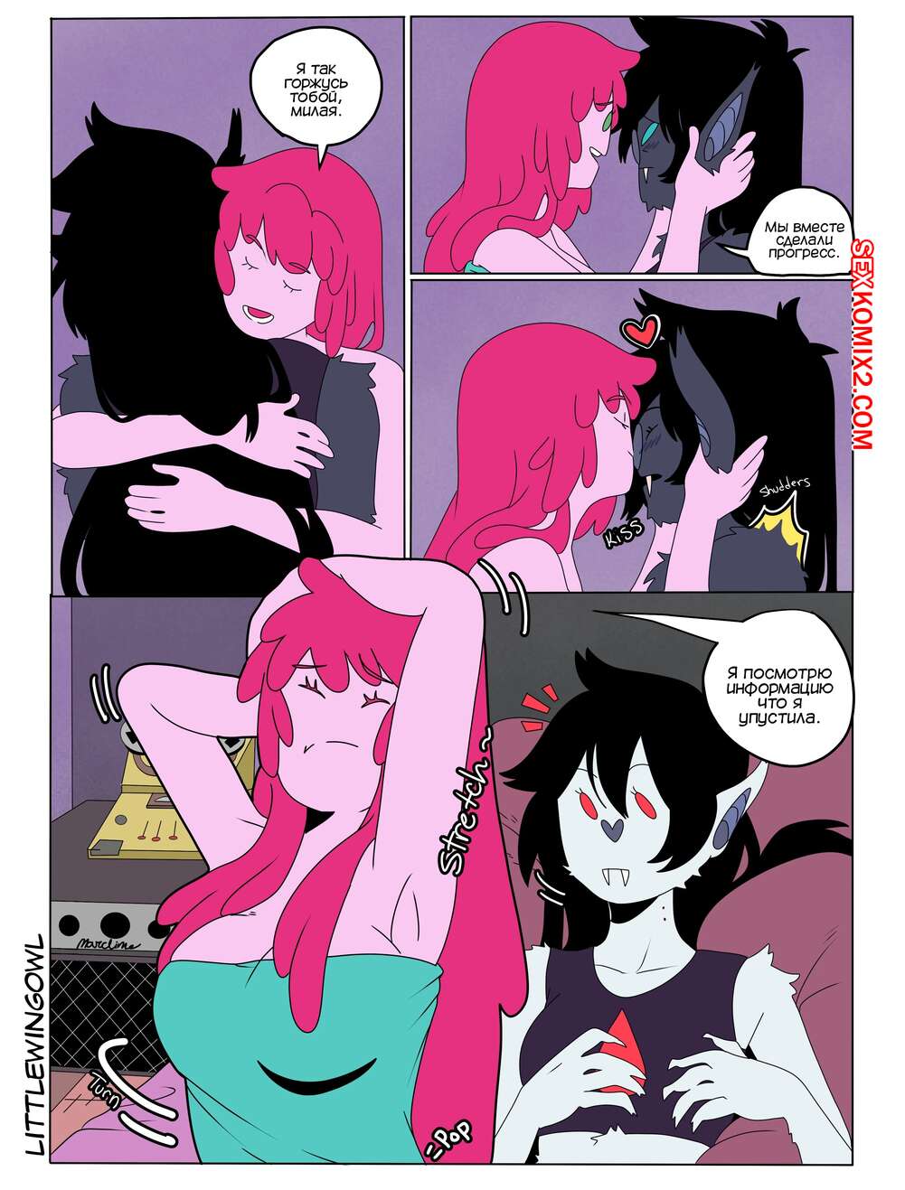 Порно комикс Adventure Time. Пузырь. Часть 1. Bubbline comic. LittleWingOwl. Марселин вернулась домой после после тяжелой недели и Бонни сообщила подруге, что хочет заняться с ней сексом. Марси долго отказывалась, боясь причинить подруге боль, но все таки они разделись и приступили к лесбийским играм.
