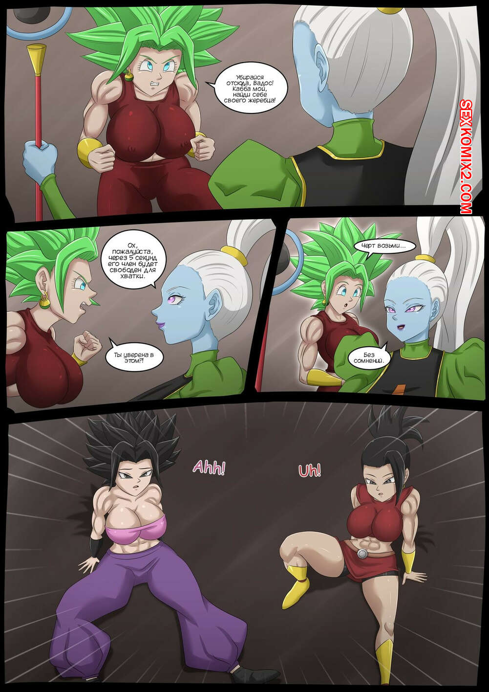 Порно комикс Dragon Ball. Боевая напряженность. Battle Tensions. Magnificent Sexy Gals Кефла возбудилась при виде накаченного тела Каббы и решила с ним повеселиться. Девушка отправилась в ним в мотель, где стала ласкать хуй парня, после чего дала ему себя выебать.