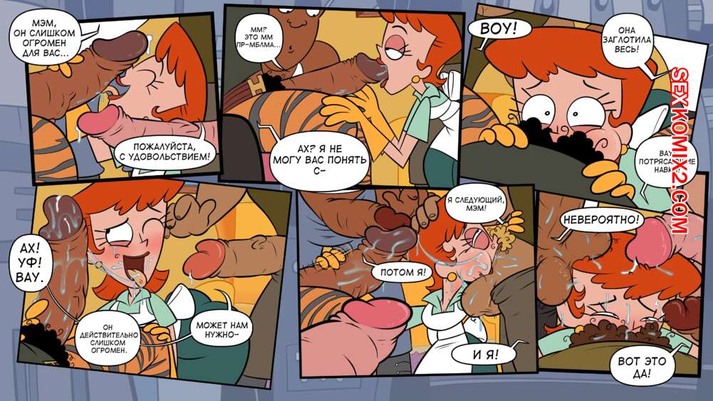 Порно комикс Декстер. Действующая шалава. Action Skank. Blargsnarf. Темнокожие парни возбудились при виде шикарно рыжей милфы и решили с ней повеселиться. Они раздели ее и дали ей отсосать свои большие хуи, после чего выебали красотку во все дырочки.