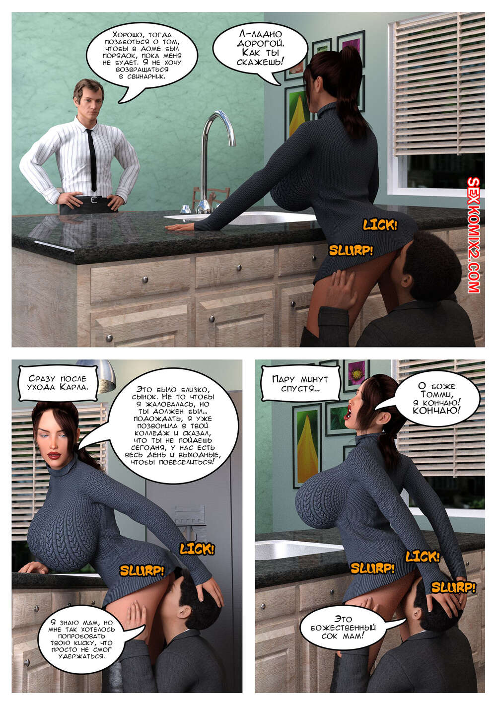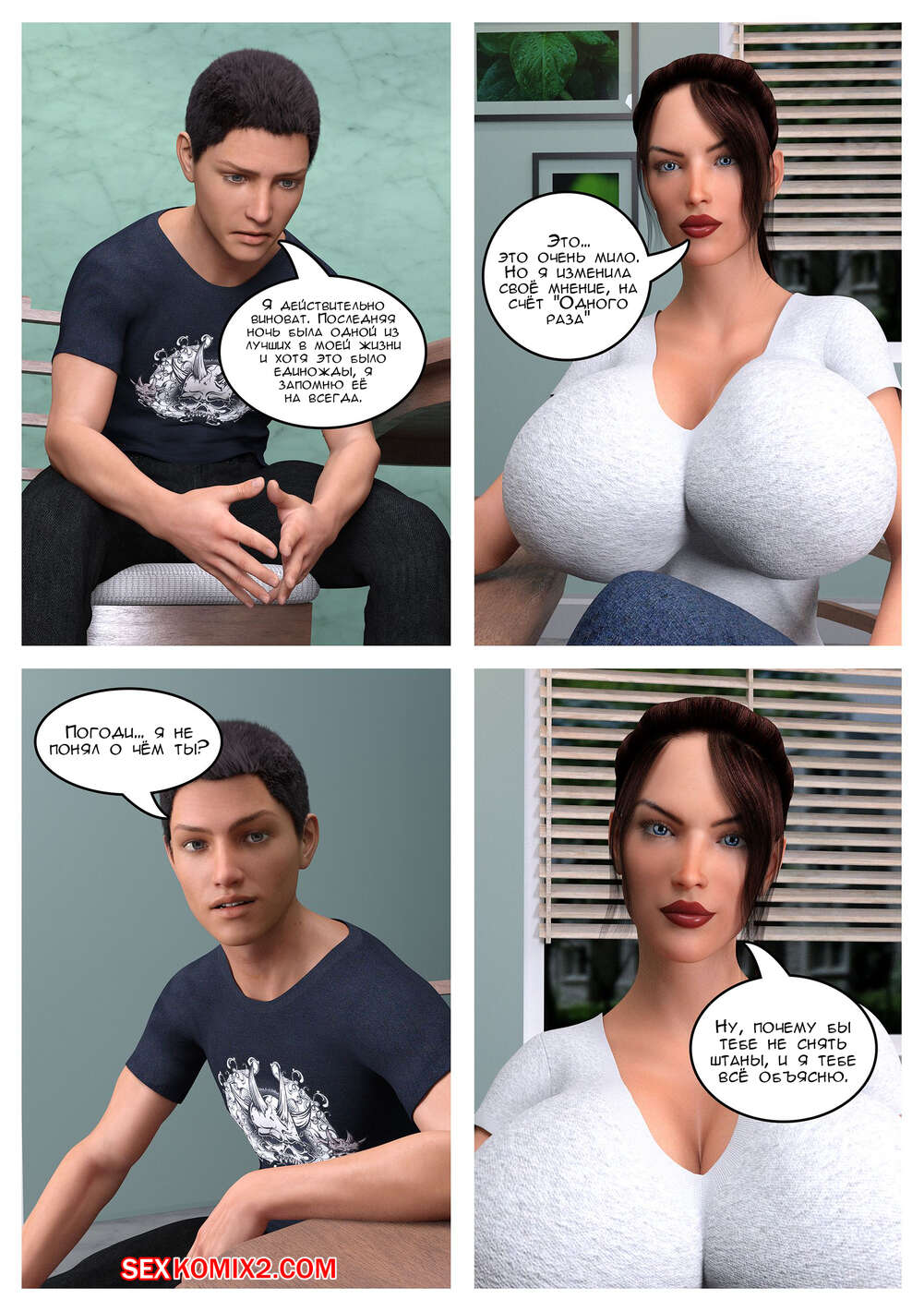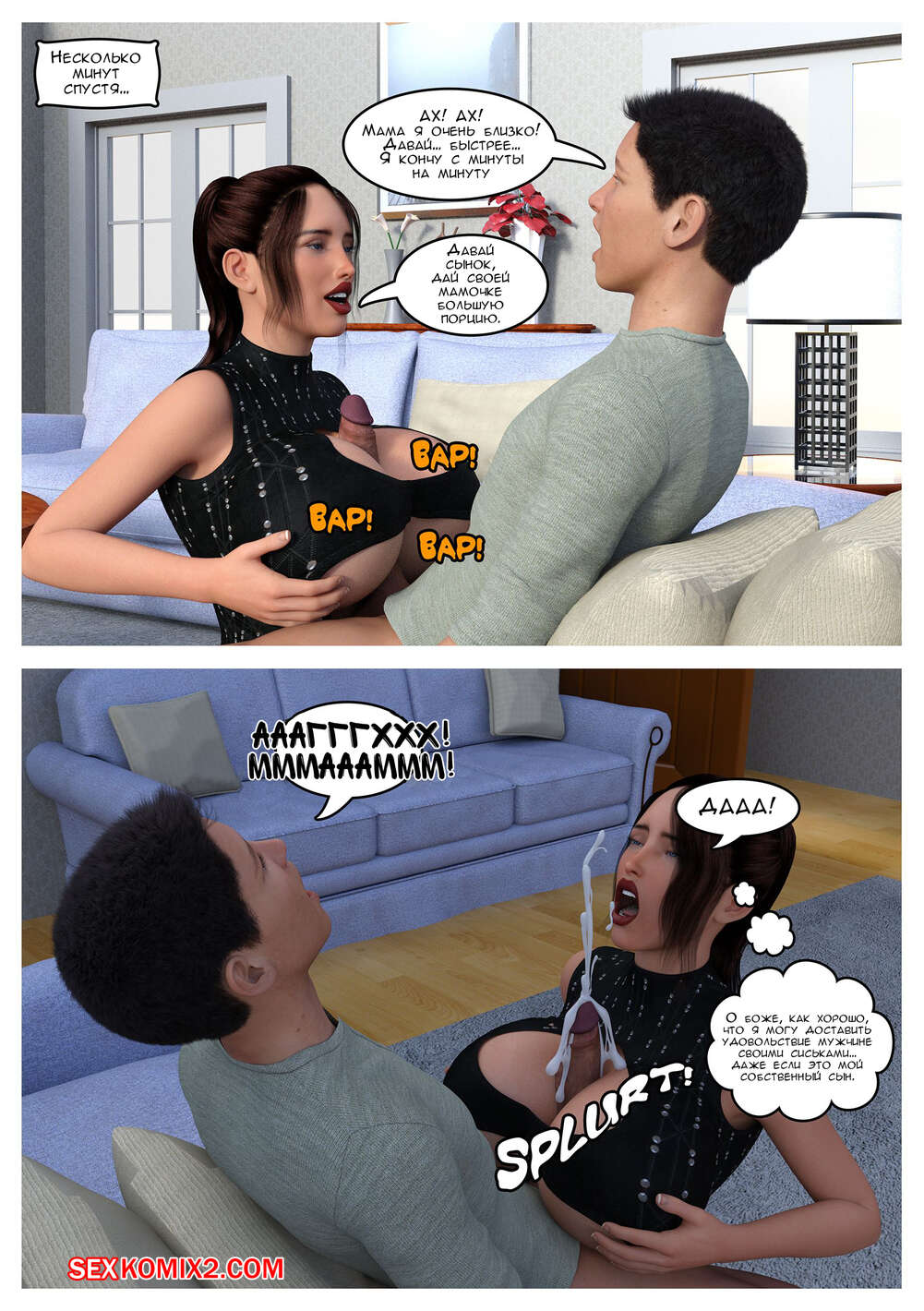 Порно комикс Руки помощи и исцеление сердца. The Omega Rabbit Сексуальная брюнетка милфа недовольна сексуальной жизнью со своим мужем, поэтому она обратилась за помощью к сыну. Красотка разделась перед ним и отсосала большой хуй сына, после чего дала ему себя выебать в пизду и задницу.