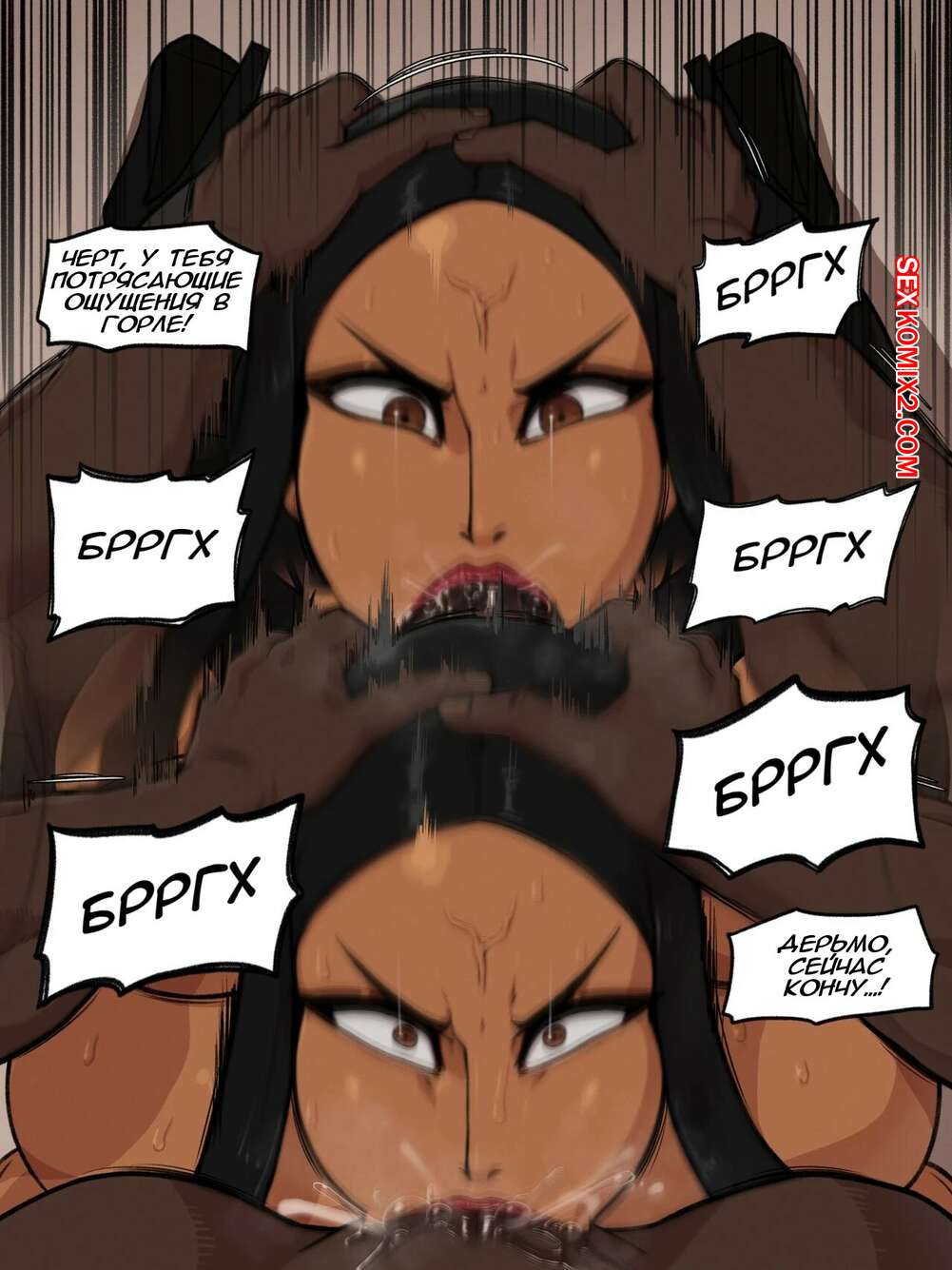 Порно комикс Юби делает минет. Yubi BJ. Rampage Сексуальная брюнетка была очень возбуждена и решила повеселиться со своим темнокожим дружком. Она встала перед ним на колени и отсосала его большой черный хуй, после чего он кончил ей в ротик.