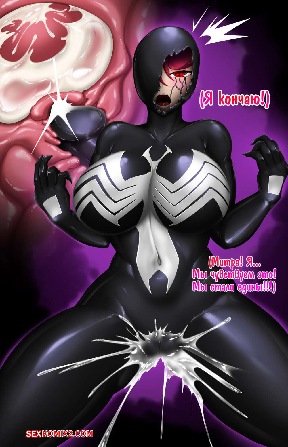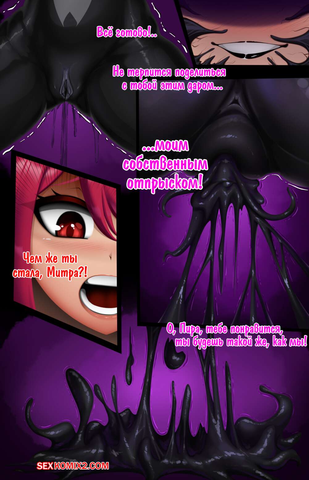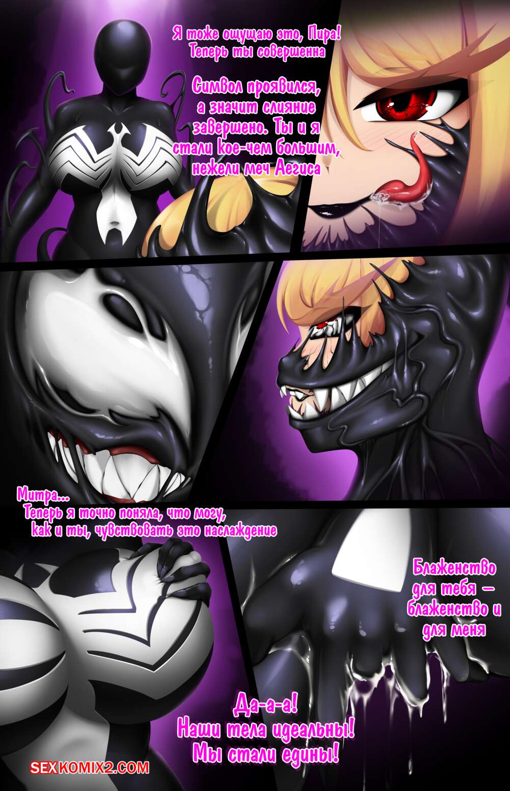 Порно комикс Блаженство Слияния. Часть 2. Митра и Пира. The Bliss From Bonding Симбиот овладел телами двух горячих красоток и решил как следует ими воспользоваться. Он проник в дырочки девушек и хорошенько их выебал, заполнив своим семенем.