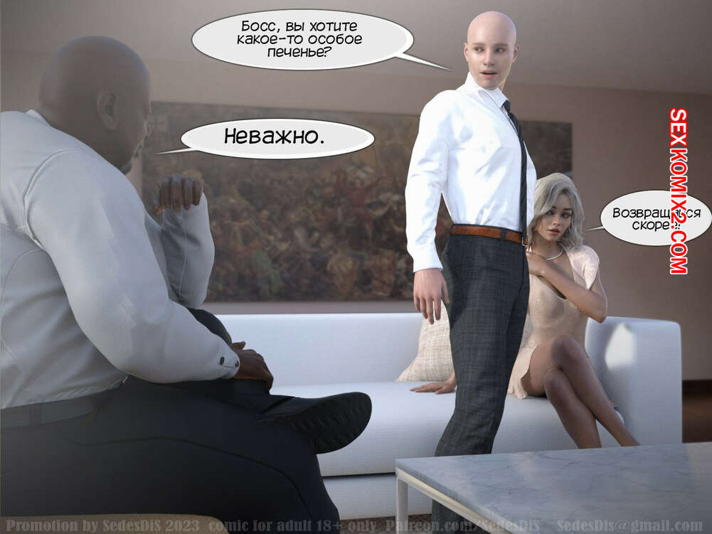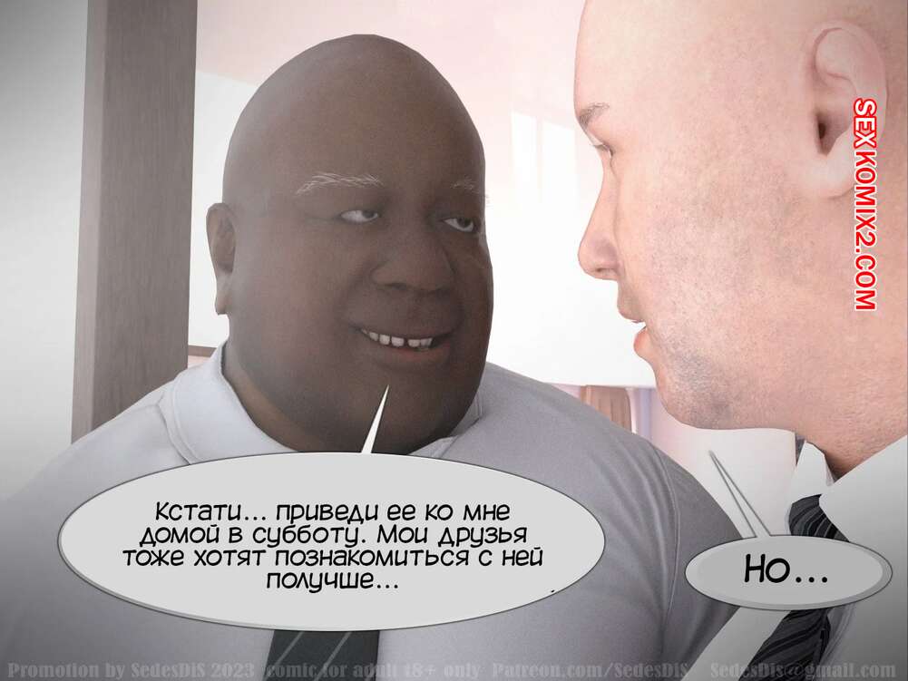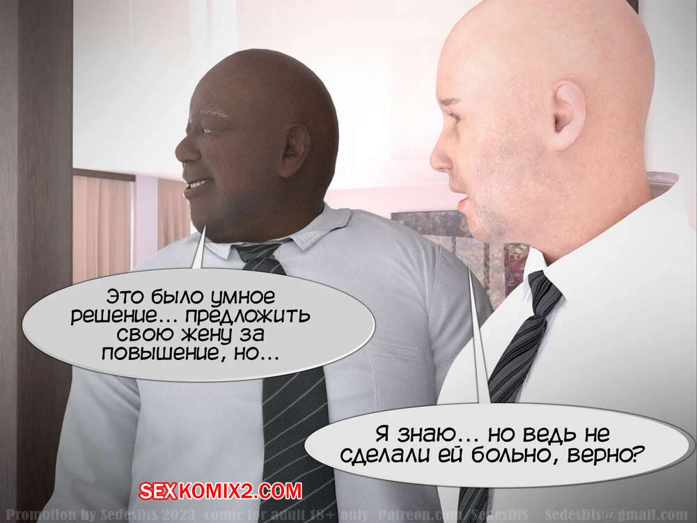 Порно комикс Повышение. Promotion. Часть 1. SedesDiS. Темнокожий мужчина пришел к своему сотруднику, которого только повысил, и его жене. Пока хозяин дома пошел в магазин за печеньем, его босс раздел сексуальную блондинку и хорошенько выебал ее пизденку.