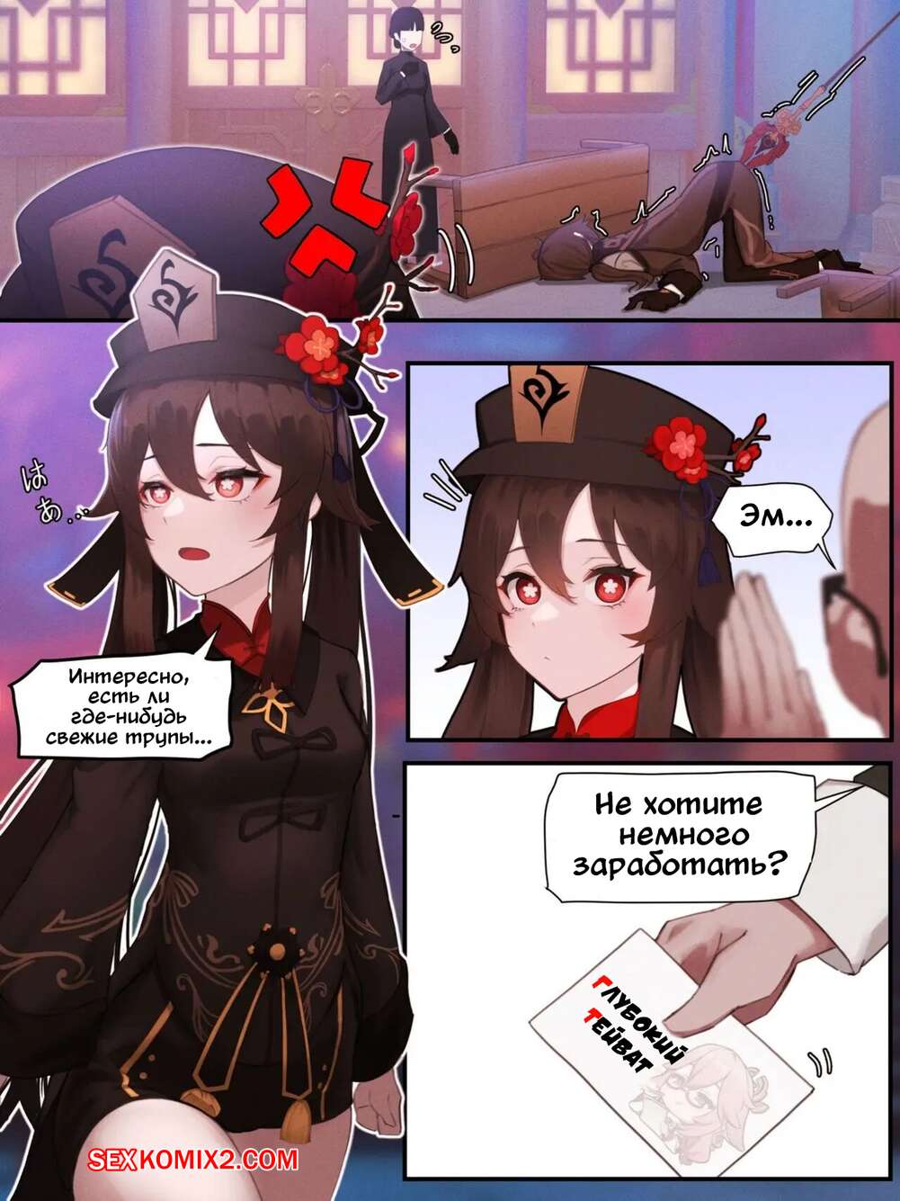 Порно комикс Genshin Impact. Глубокий Тейват. Часть 1. Horori Сексуальная брюнетка решила подзаработать денег. Красотка встретилась с парнем, который заплатил ей хорошую сумму денег и хорошенько выебал пизденку девушки, заполнив ее своей спермой.