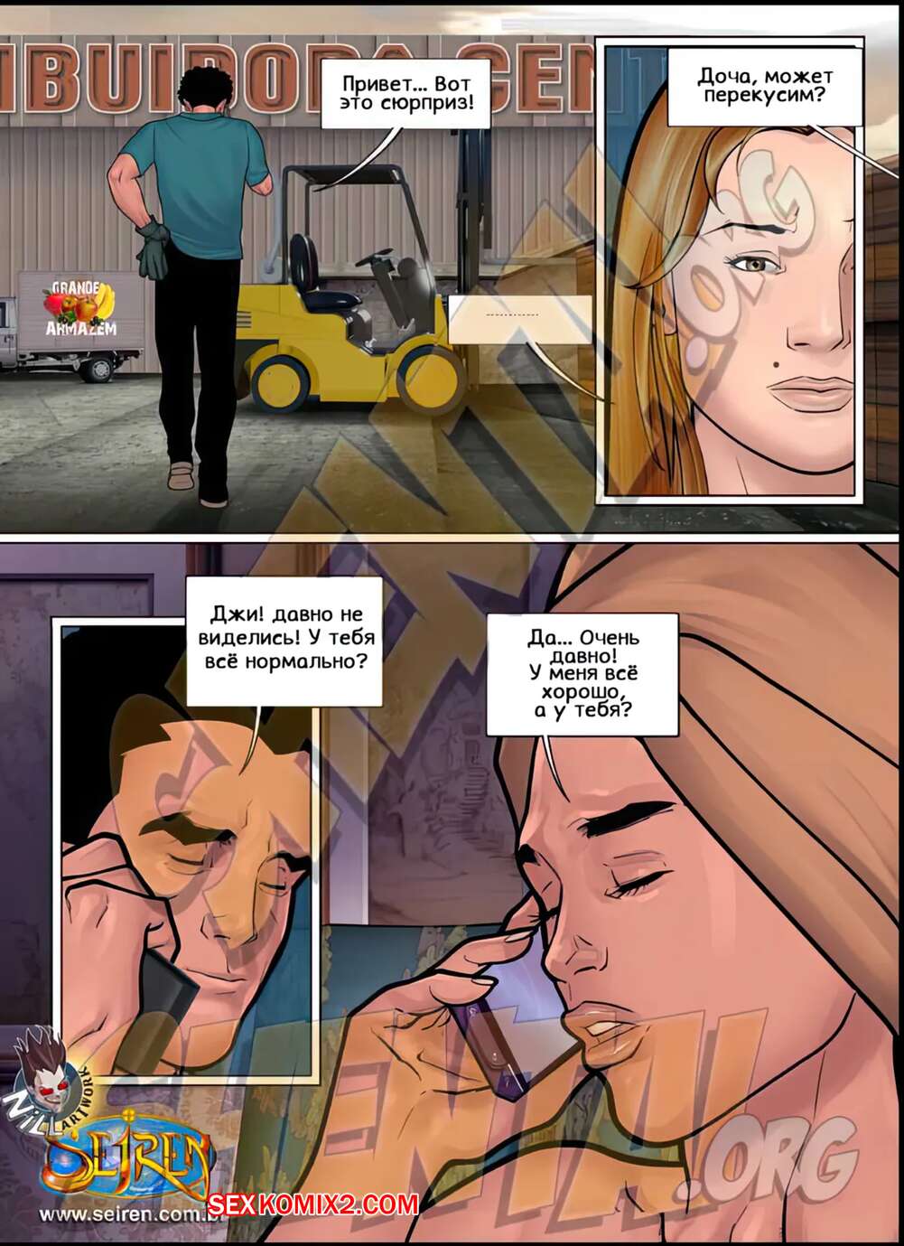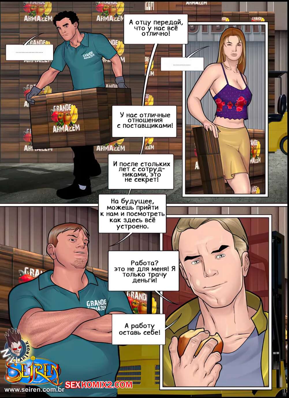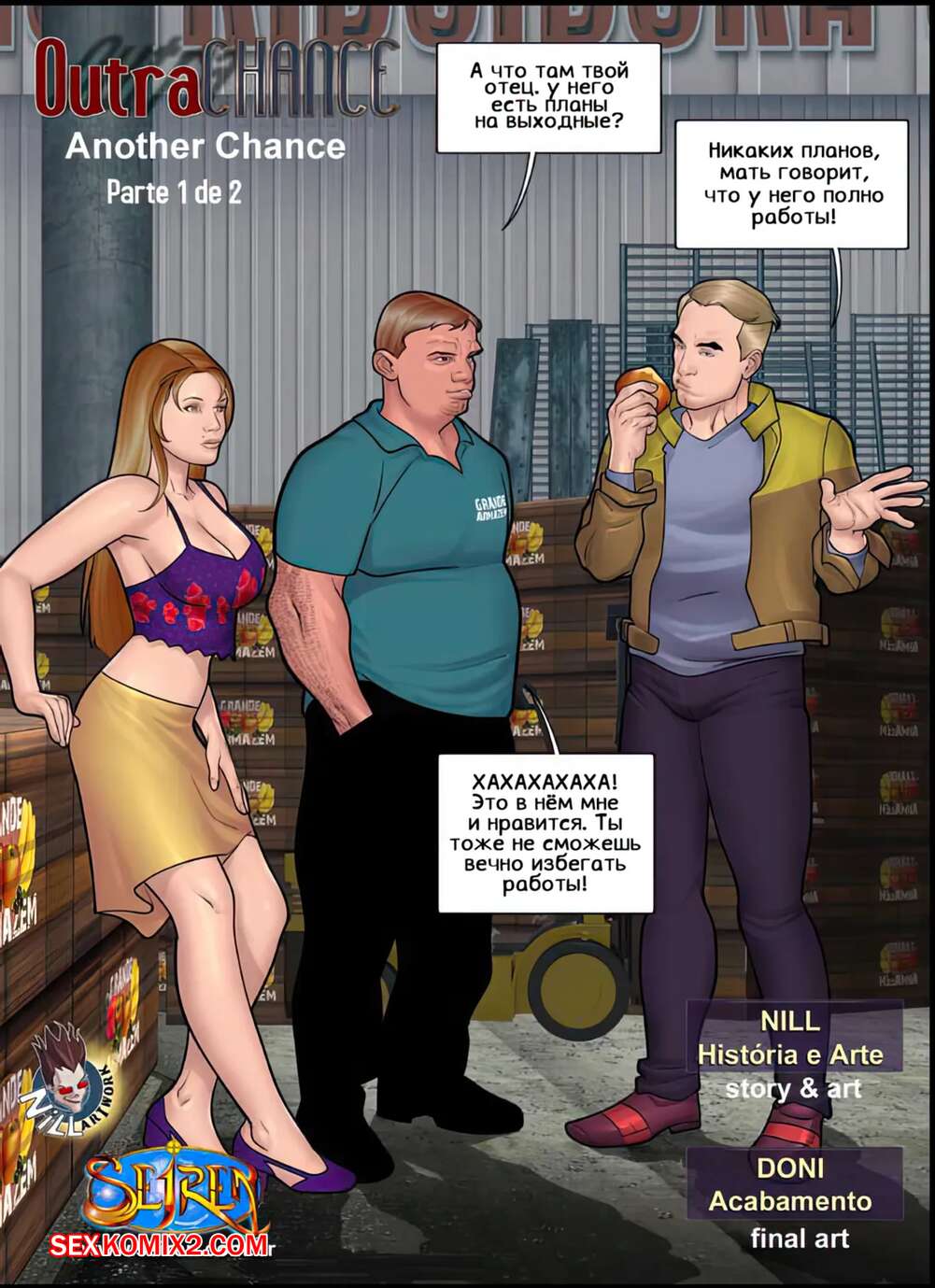Порно комикс Еще один шанс. Часть 2. Эпизод 1. Another Chance. Seiren Антонио отправился на подработку на склад. Там он познакомился с дочерью своего босса, которая стала соблазнять парня. Он достал свой хуй и выебал пизденку девушки, доставив ей огромное удовольствие.
