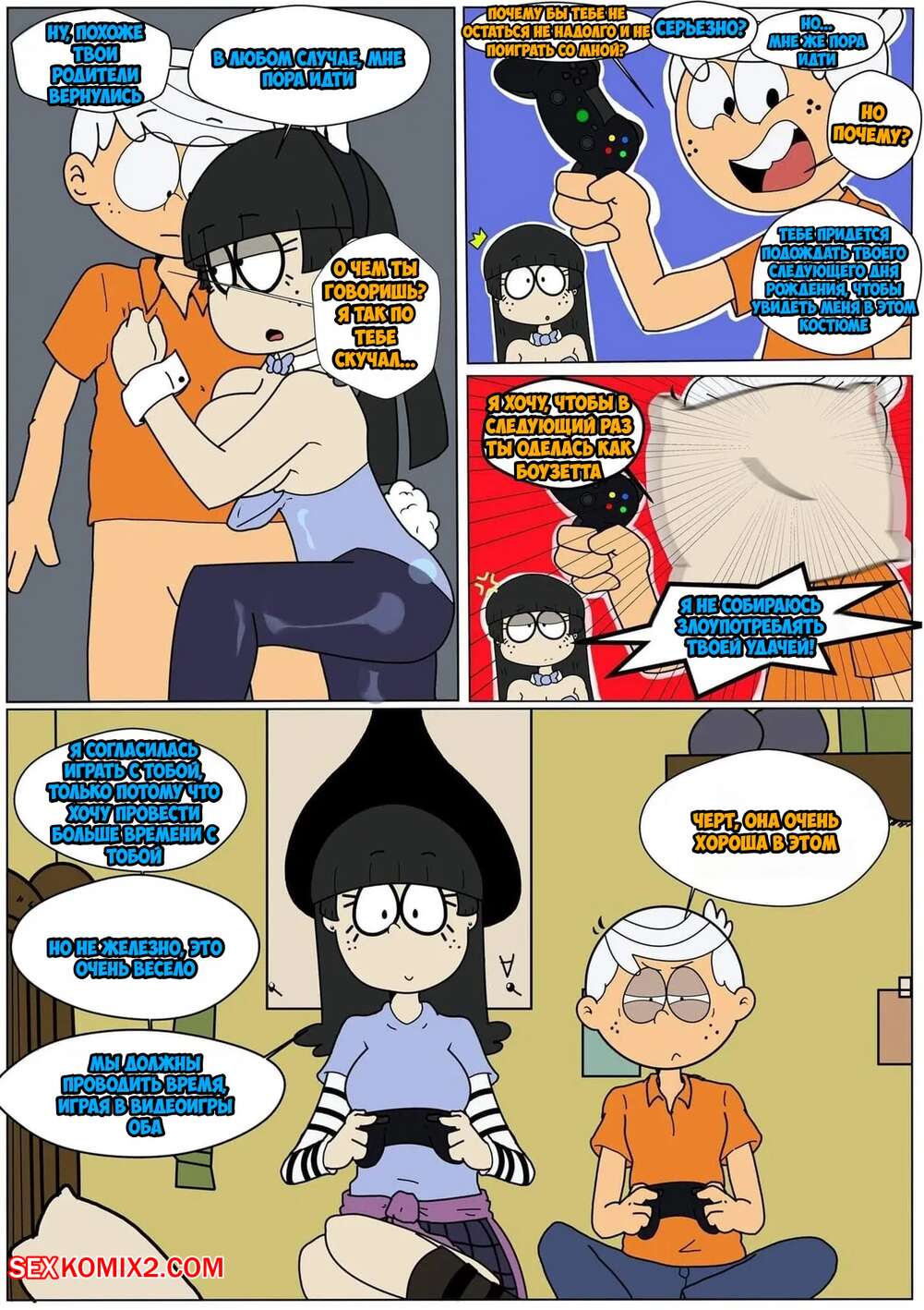 Порно комикс Шумный дом. Костюм кролика. Bunny Suit Горячая брюнетка была очень возбуждена и хотела трахаться. Она разделась перед своим дружком и стала сосать его большой хуй, после чего дала ему себя хорошенько выебать.