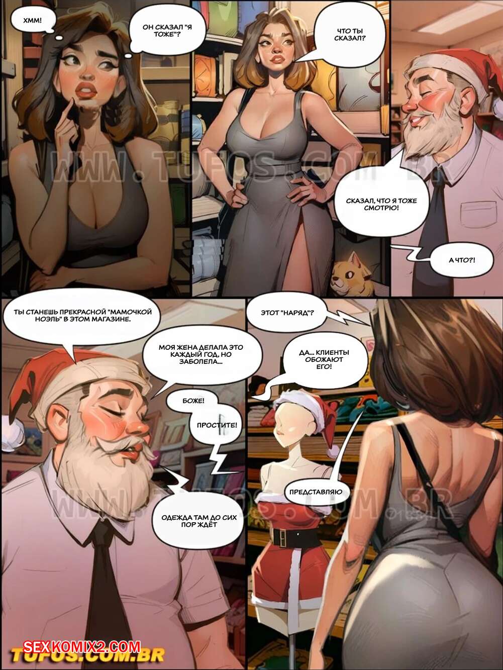 Порно комикс Наслаждение сумасшедшей жизнью. Часть 6. Tufos Сексуальная брюнетка милфа отправилась в магазин за подарками на рождество. Цены кусались, поэтому красотке пришлось заняться секссом с парнем, чтобы получить существенную скидку.