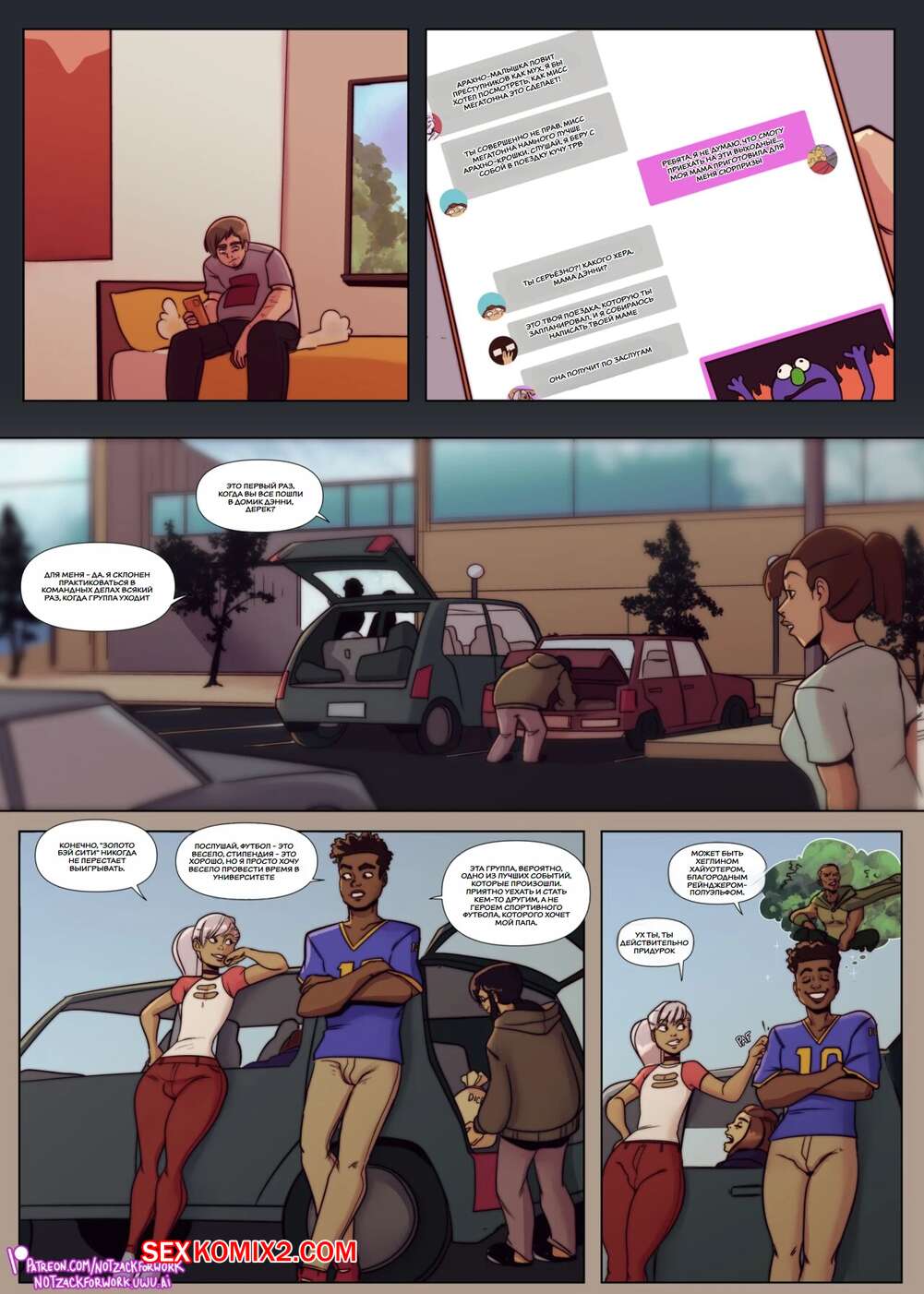 Порно комикс Селфи и волшебство. Selfies and Sorcery. NotZackforwork Молодой парень отправился на встречу со своими друзьями детства. Они поехали с ночевкой в лес, чтобы поиграть в новую настольную игру, о которой они ничего не знают.