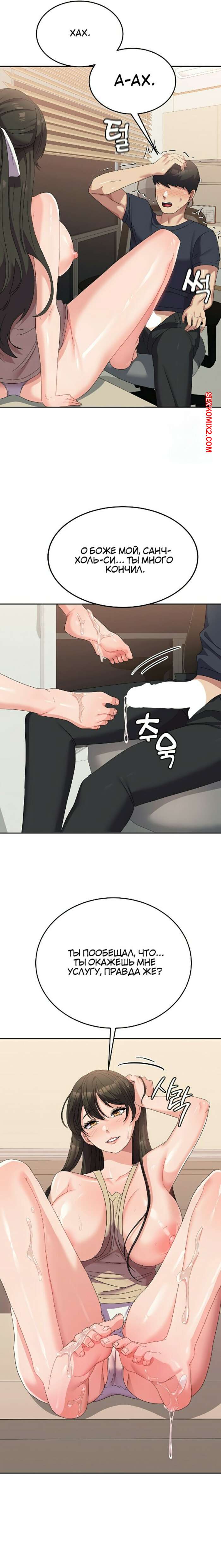 Порно комикс Студент в женском универе. Части 33 и 34 и 35. Women University Сексуальная брюнетка была очень возбуждена и решила повеселиться со своим дружком. Она достала хуй парня и стала дрочить его ножками, помогая ему поскорее кончить.