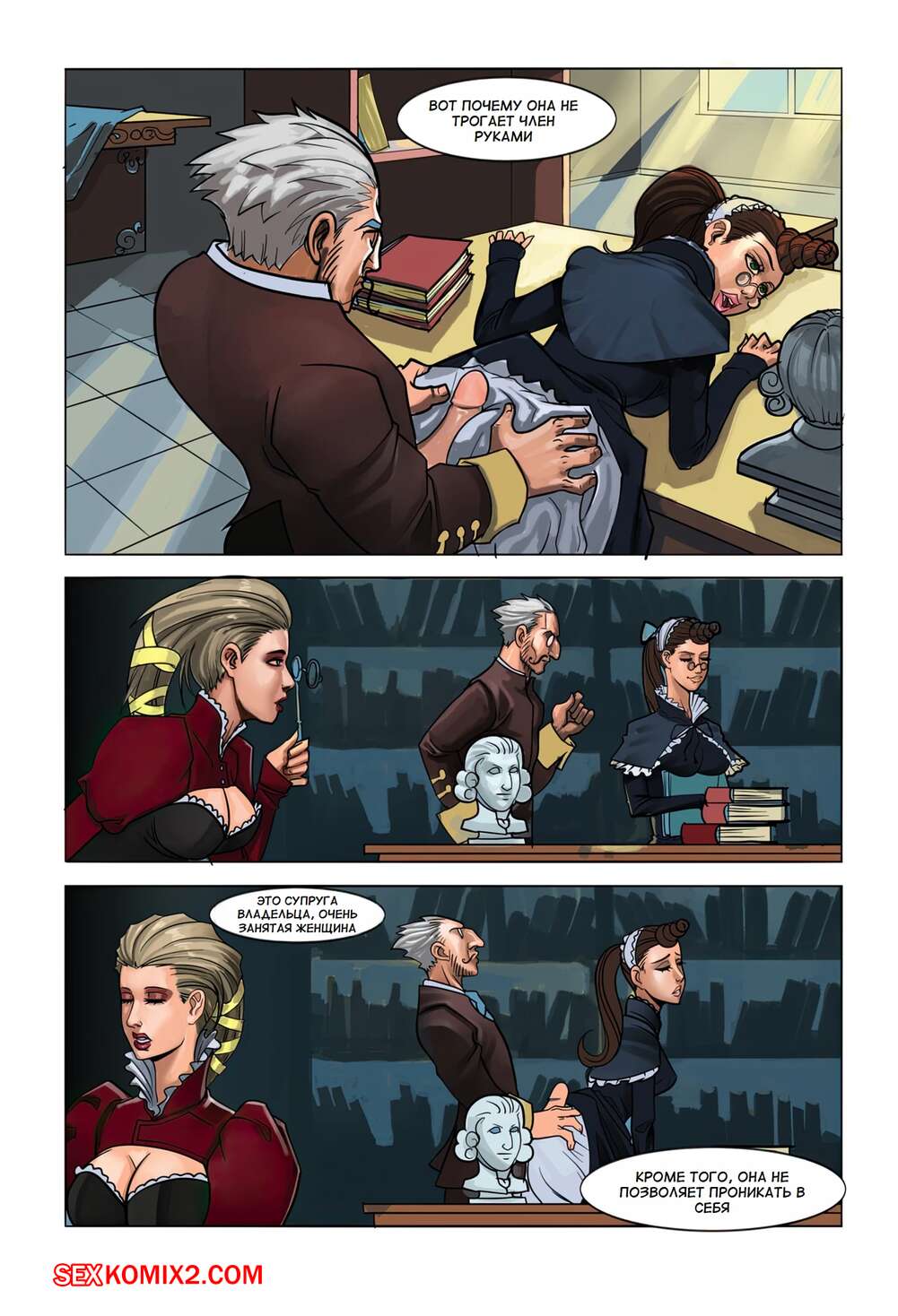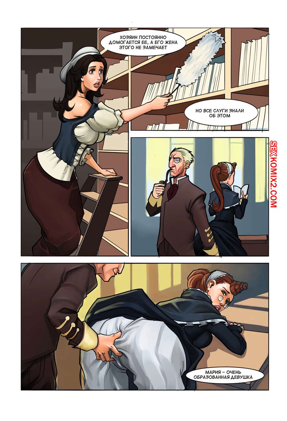 Порно комикс Викторианская девушка. Victorian Girl. Dr Smolev Молодая горячая брюнетка работает горничной в доме старика и его сексуальной жены. Она часто следит за любовными похождениями мужчины, а теперь еще и принимает в них участие.