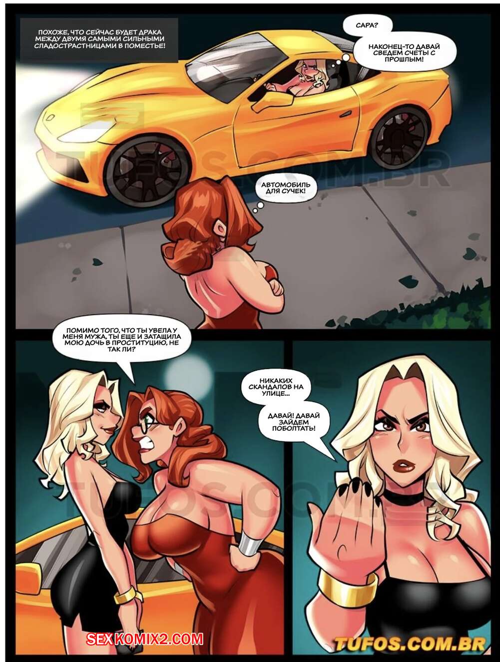 Порно комикс Сладкие домохозяйки. Часть 10. Donas de casa volluptoosas. Tufos. Две горячие домохозяйки начали ругаться, их ссора переросла в лесби секс. Когда муж одной из них вернулся домой, он обрадовался и трахнул обоих.