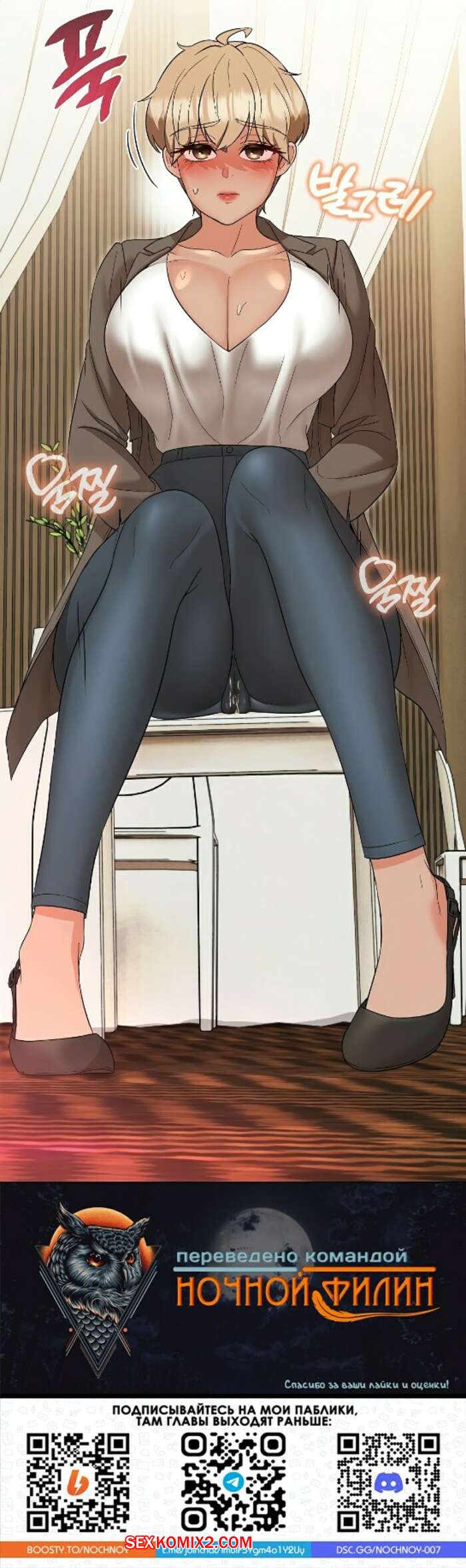 Порно комикс Хозяйка особняка, моя бывшая учительница. Часть 16 и 17 Сексуальная блондинка осталась одна в своей комнате и очень возбудилась. Красотка разделась и стала ласкать свою пизденку и парень застал ее за этим делом..
